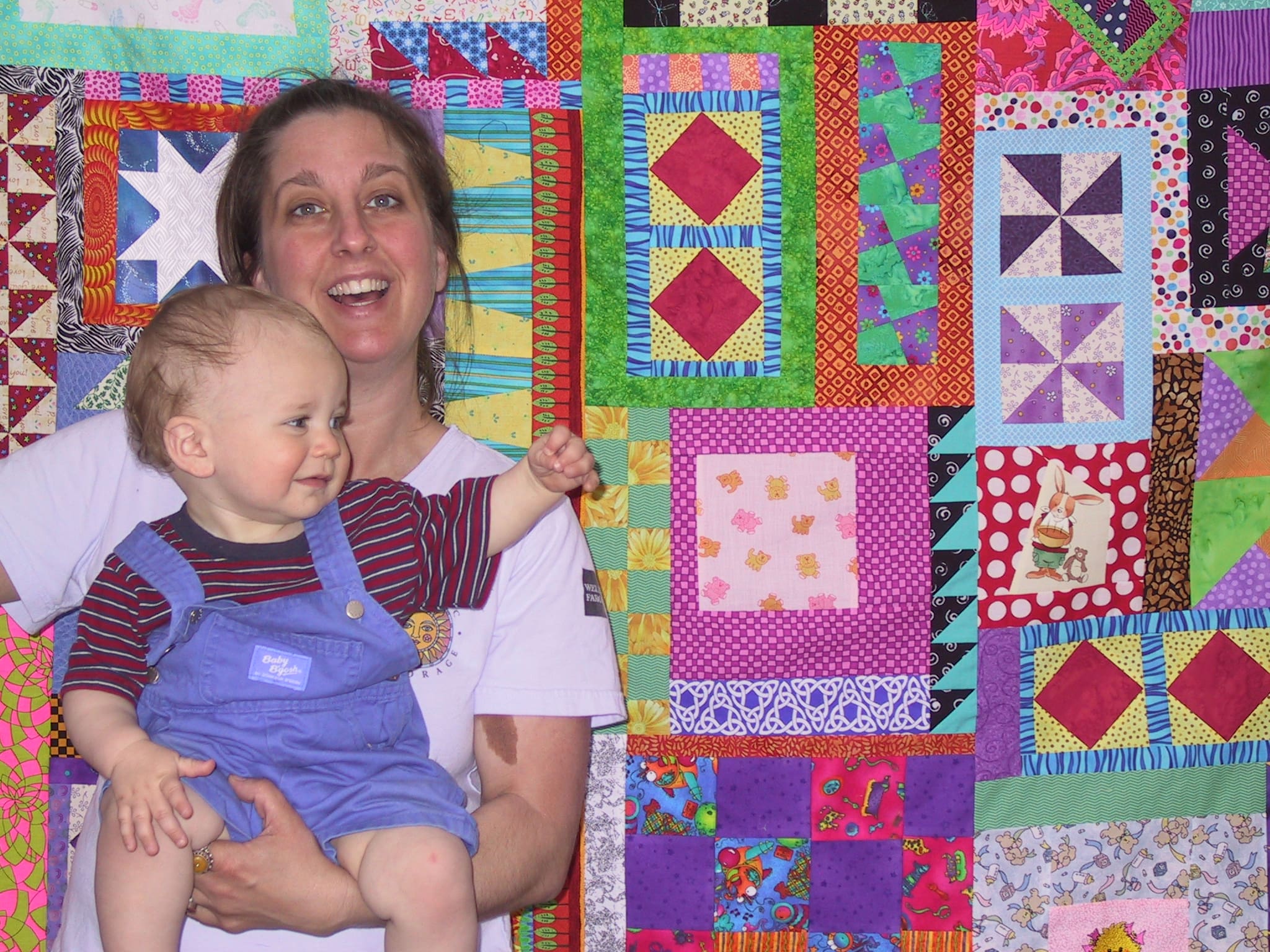 This quilts are early examples of my kitchen sink quilting. If its too big, cut it off. If it is too small, add some more fabric. It works! Really it does.