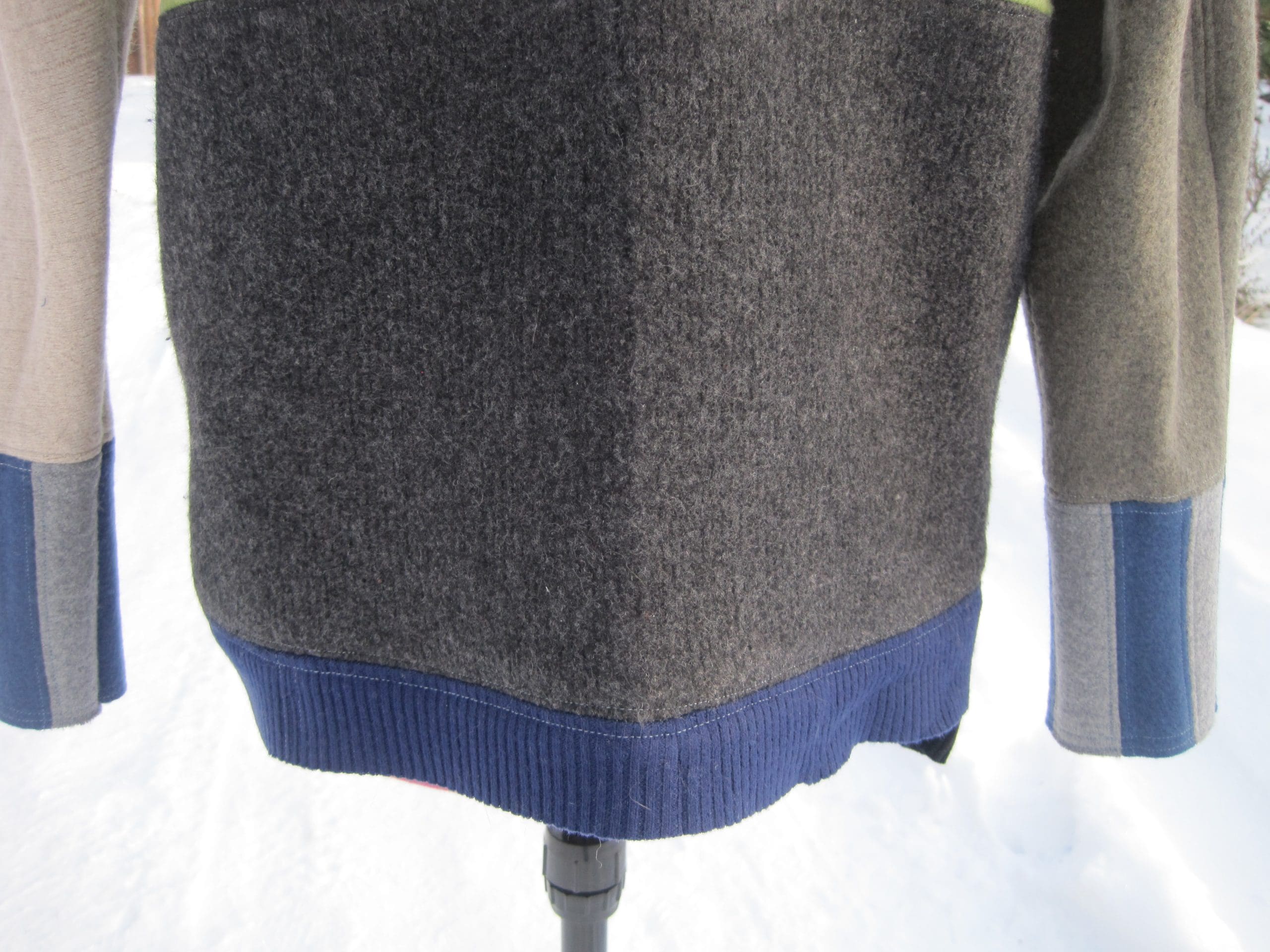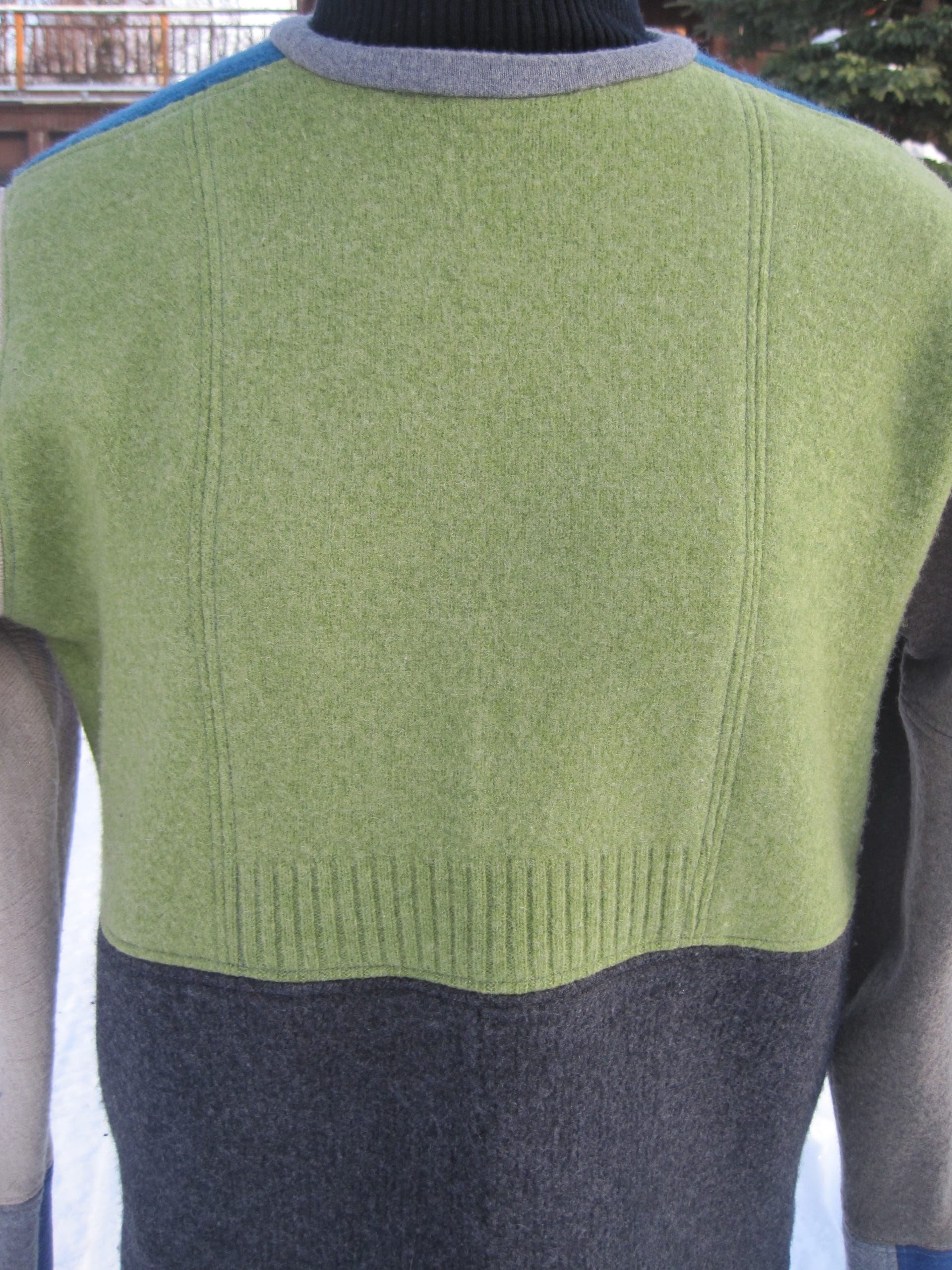 - I really like how I used elements of the original sweater to create interesting lines here. And I love this green. I was sad when I ran out of it. Such is life when you work with old sweaters instead of yardage.