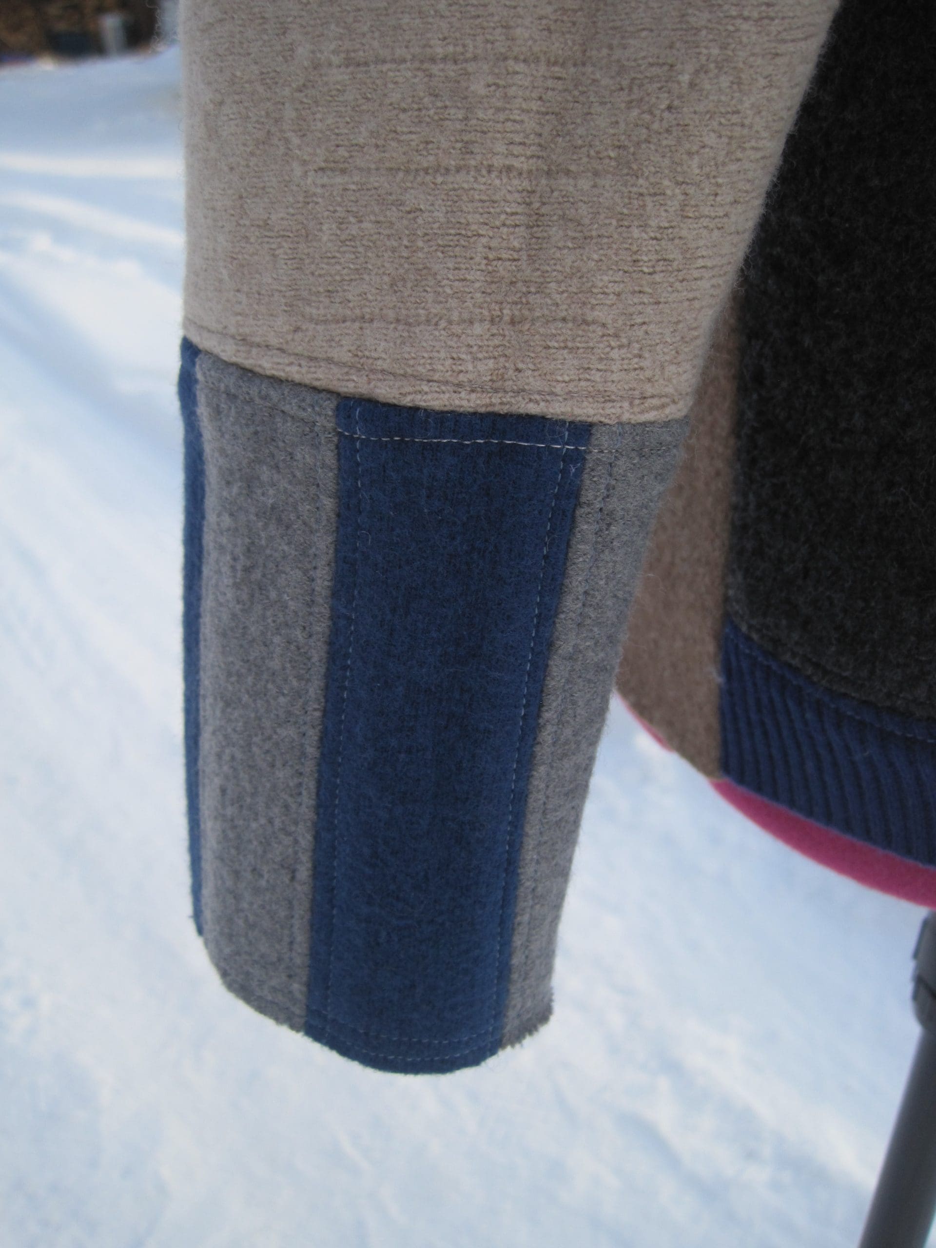 - I love this patchwork here on the cuff of the sleeve. But I do have to reinforce these seams as they get a lot of wear.