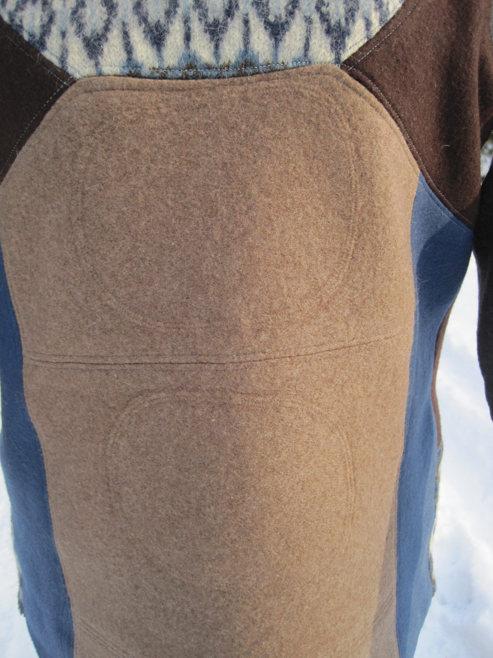 So, I tried it again focusing more on creating graceful patchwork lines. Originally, the front was the back. But once I pieced it, I saw that the lines had the potential for being an attractive front for the sweater. I was getting close, but still not there.