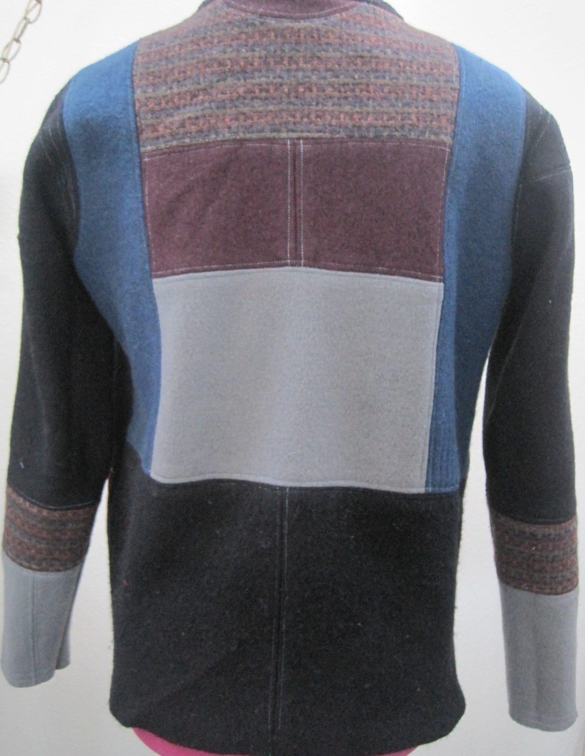 While the front of each Mod sweater is the same, the back is different. Sometimes I use pattern pieces to create the back, and sometimes I let the shape of the piece of felt guide me. Each back is a surprise. Here is a little gallery of some of the Mods I have made so far.