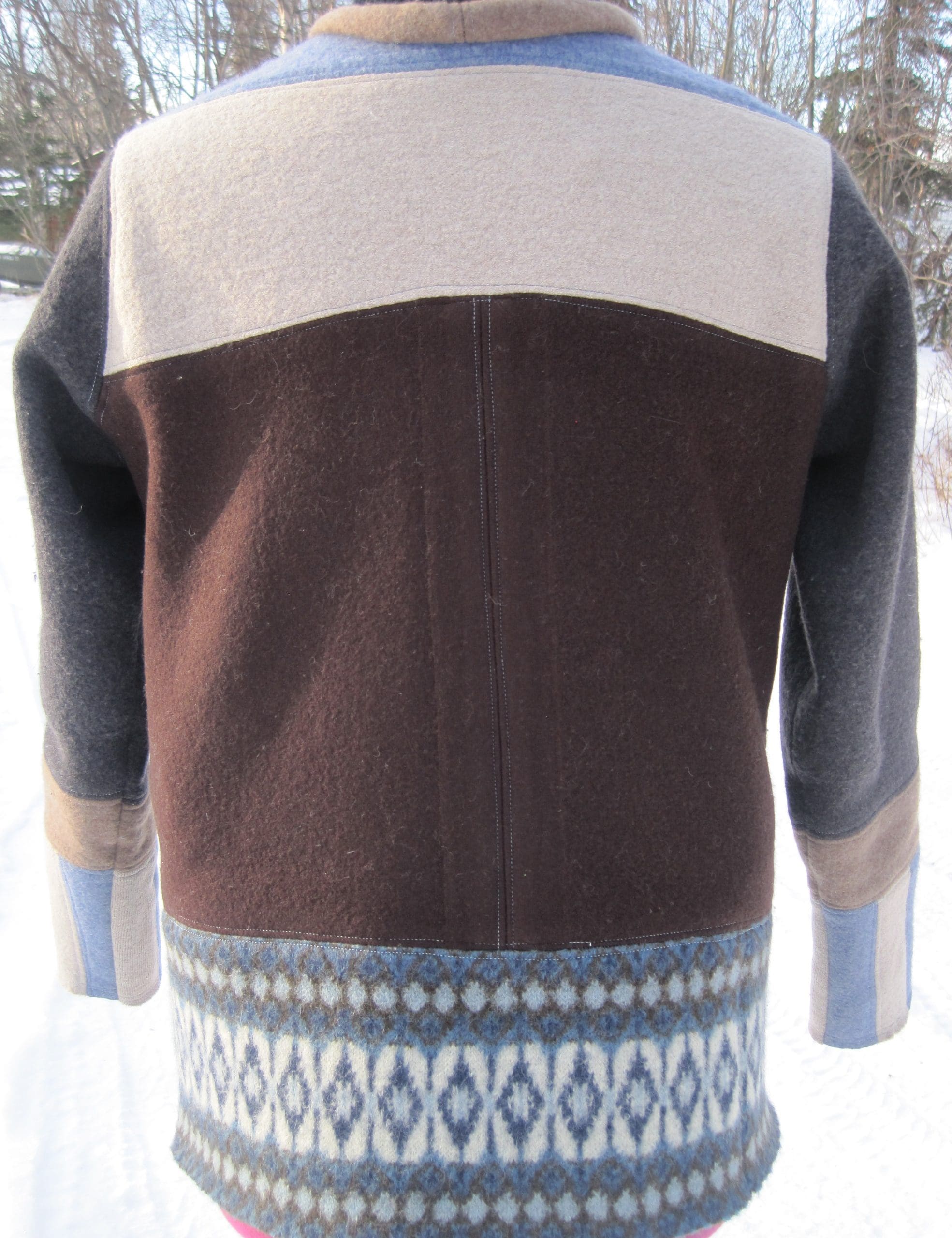 When we last left off, I had finished creating my first sweaters out of felted wool from old thrift store sweaters.