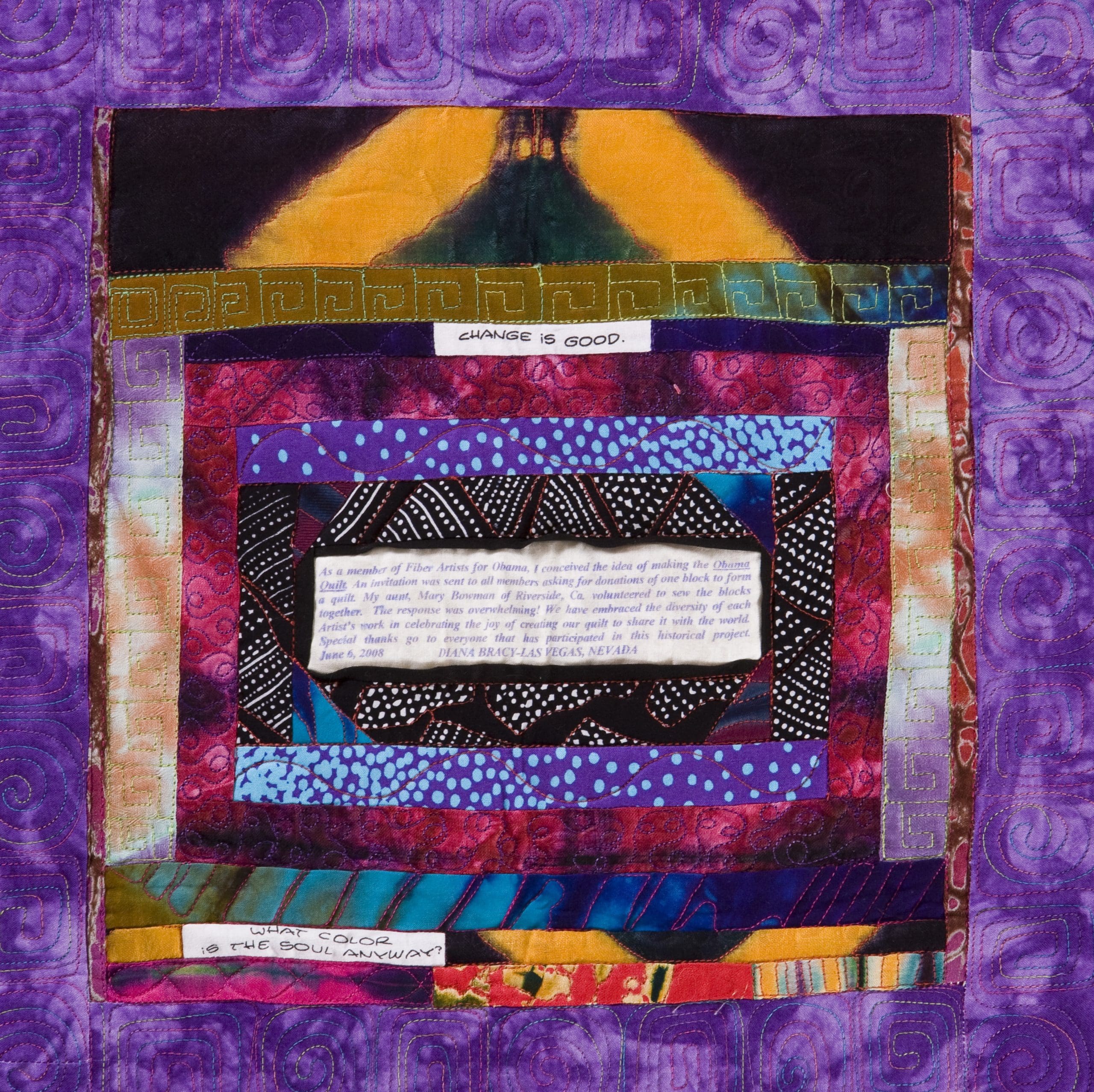 Next the quilt went to Washington D.C. to be a part of a show curated by Sue Whalen called President Obama a Celebration in Art Quilts. My quilt Colors Unfurled was also part of that exhibit.