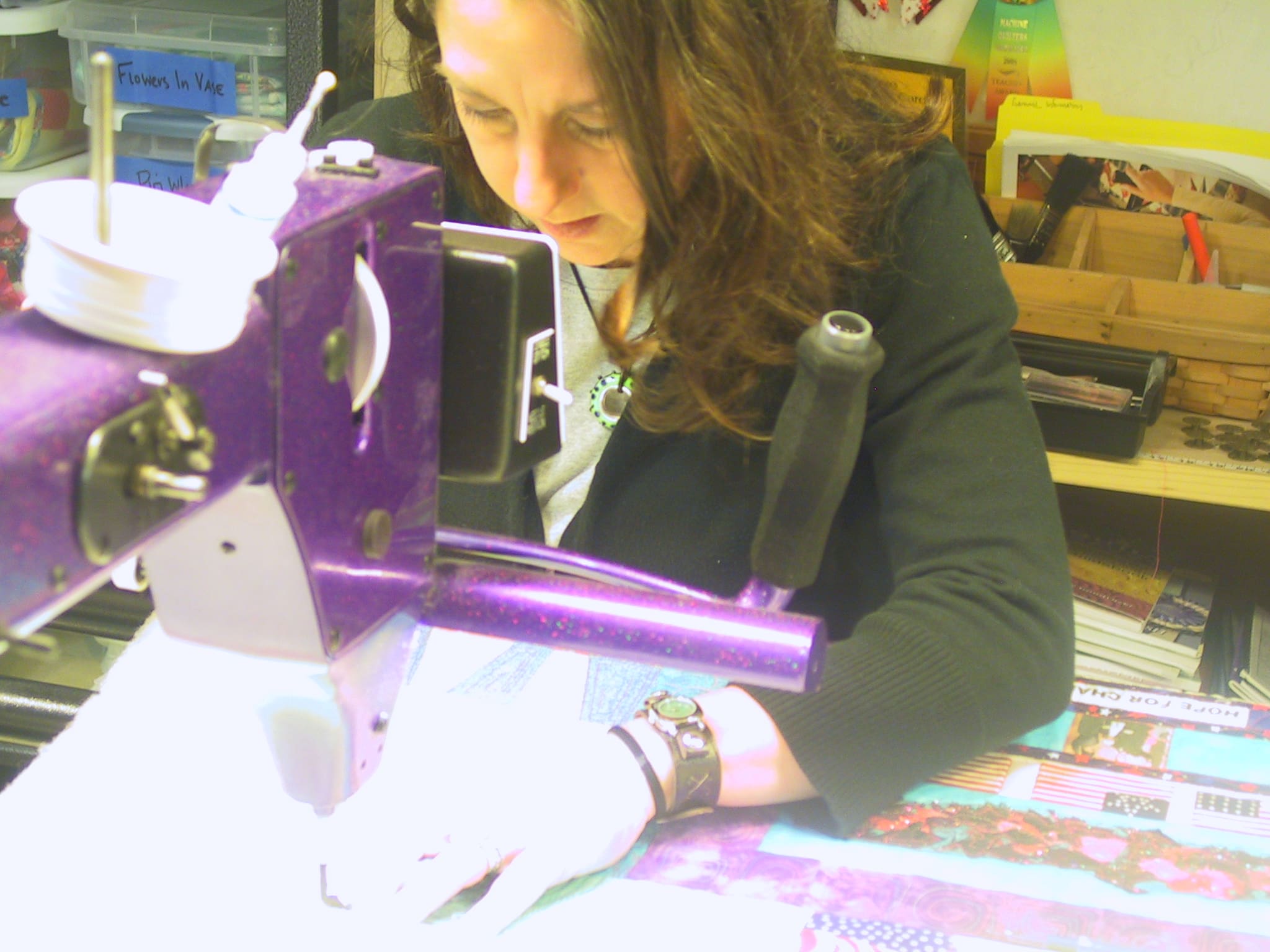 This is the point where I joined the group, I did not make a block for the quilt, but I volunteered to quilt it. Diana Bracy, one of the artists involved in the quilt, and I had several phone conversations about getting this done. We really wanted to finish the quilt in time for the Democratic Convention in Denver, but it just wasn’t happening.