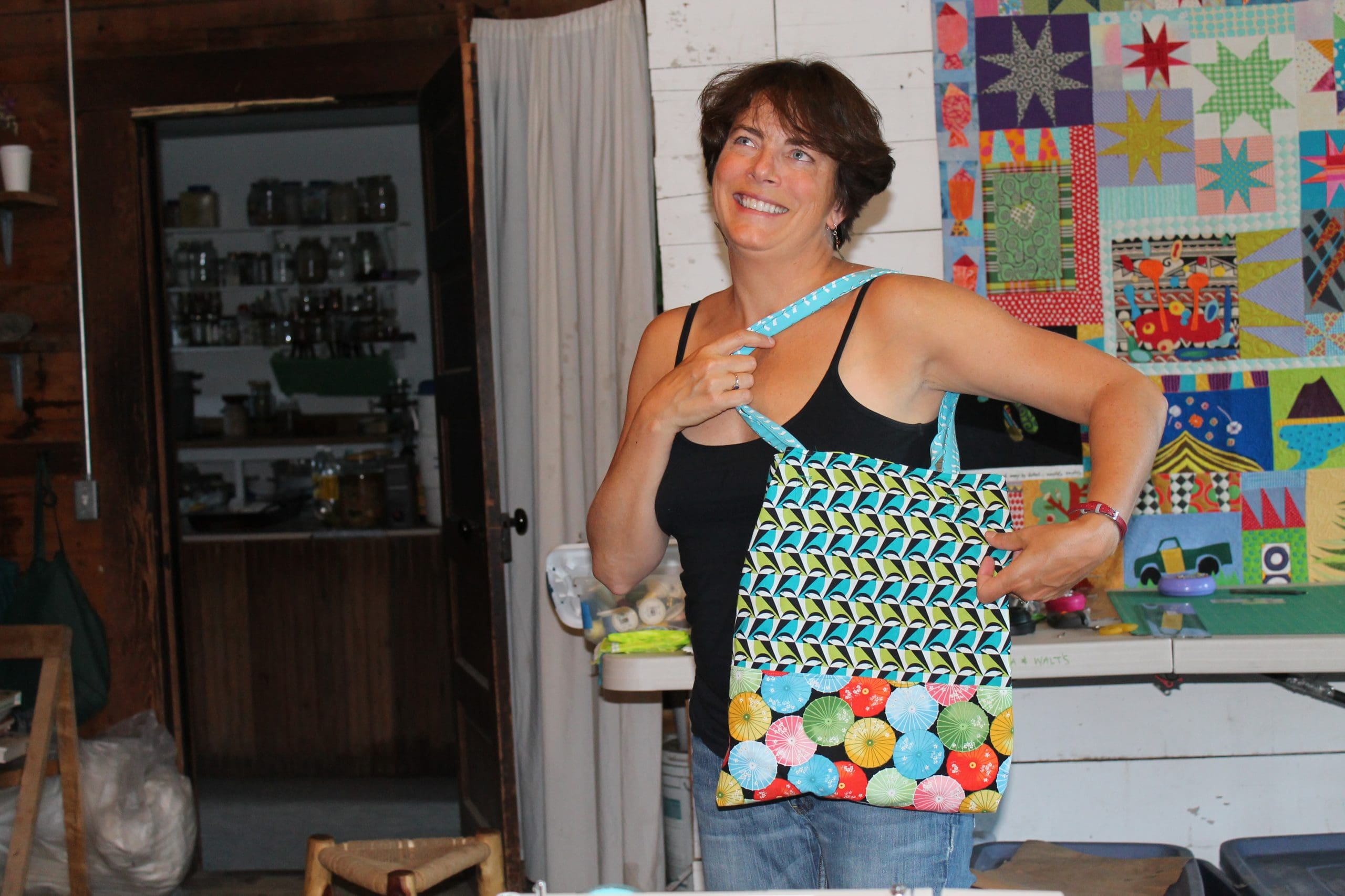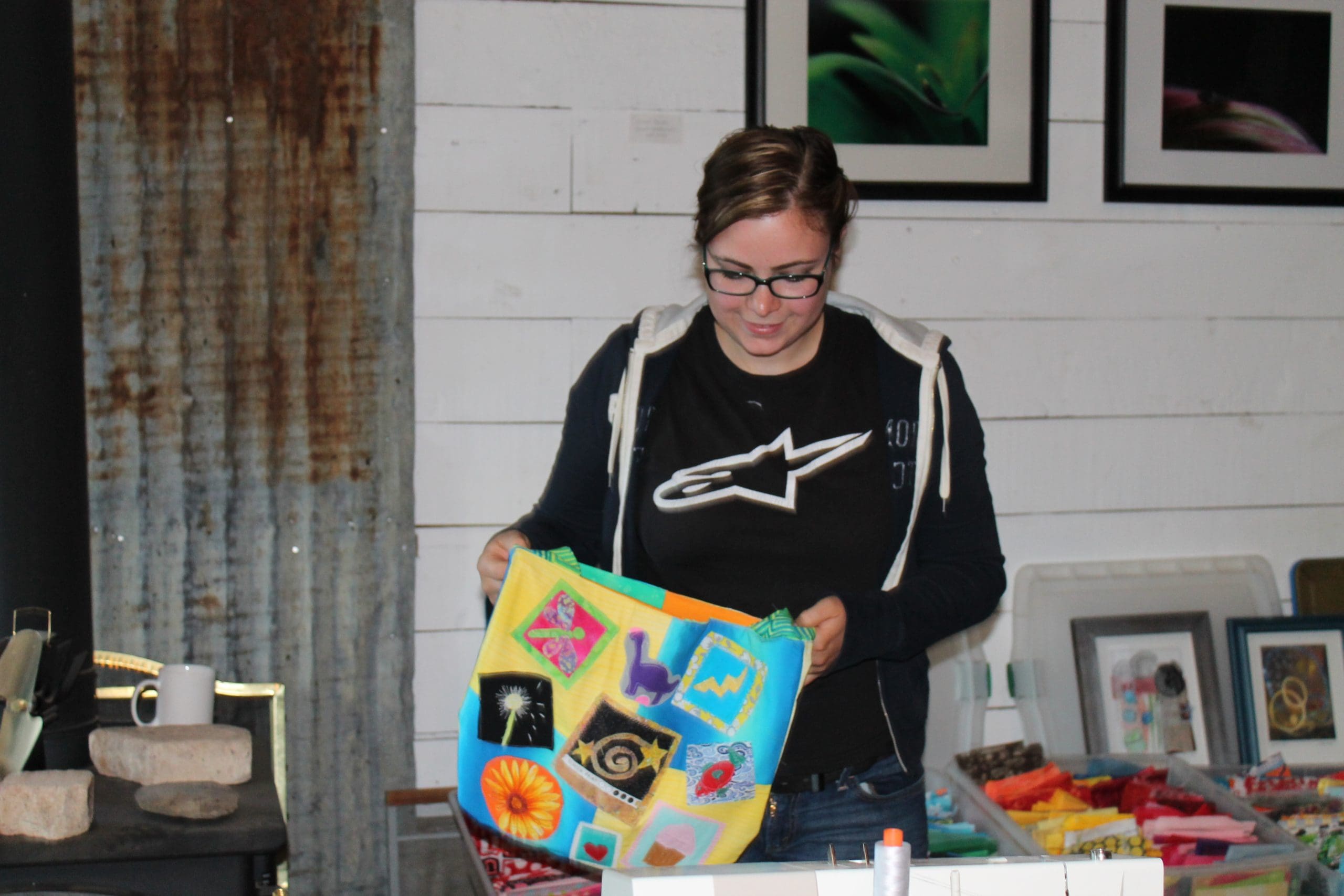 - When ever Andrea needed me, but I was busy she made little art patches. They made a great surface design for tote.