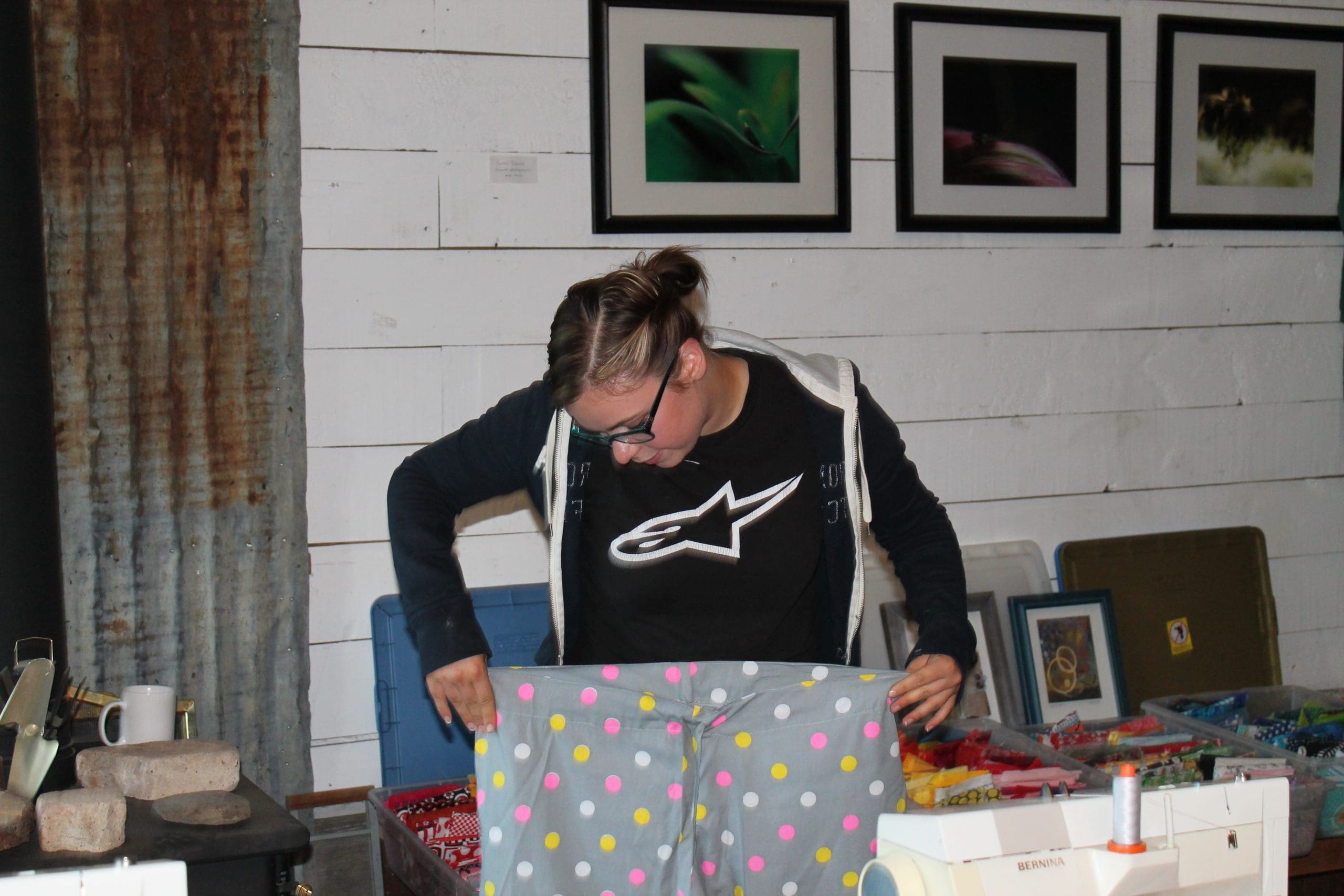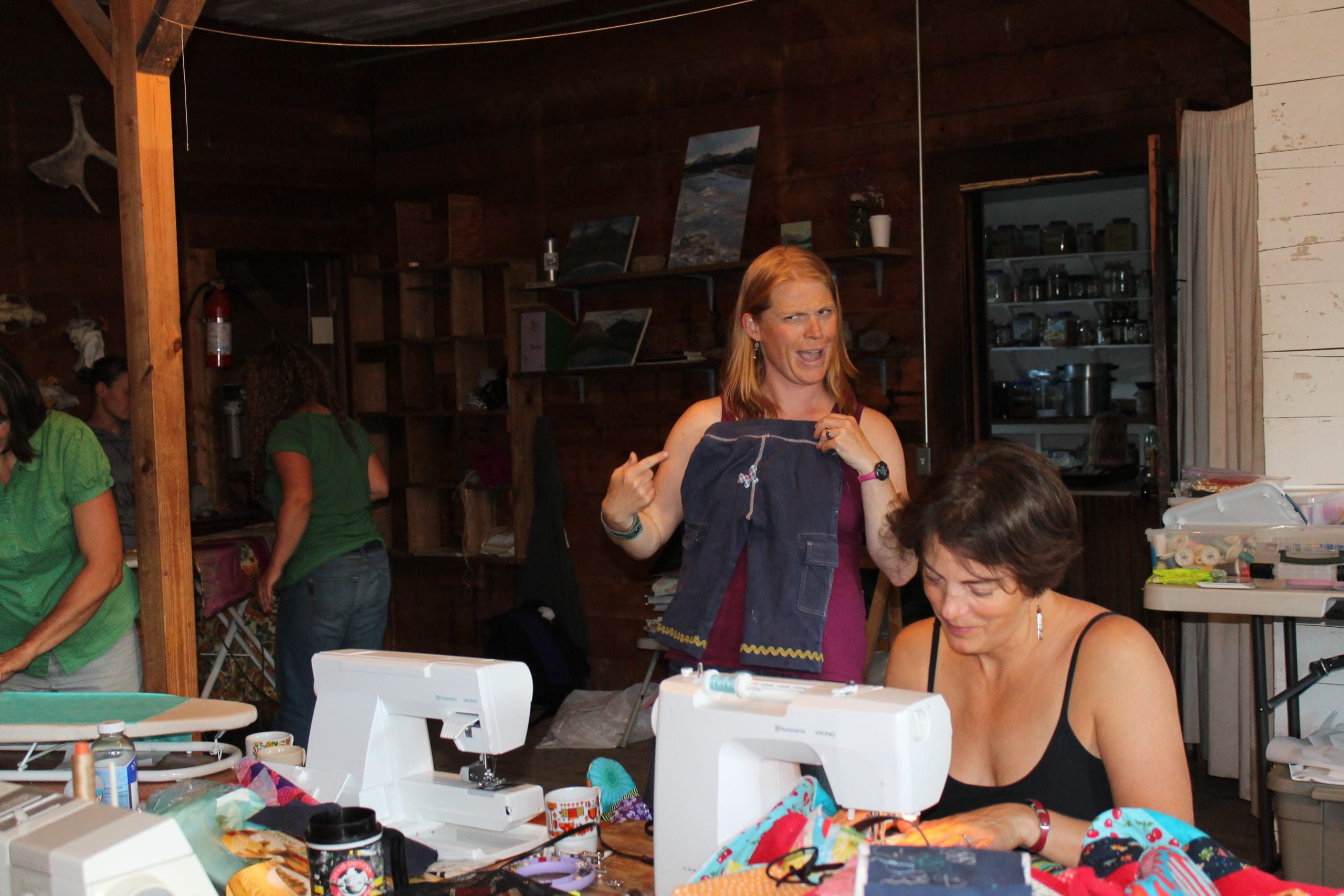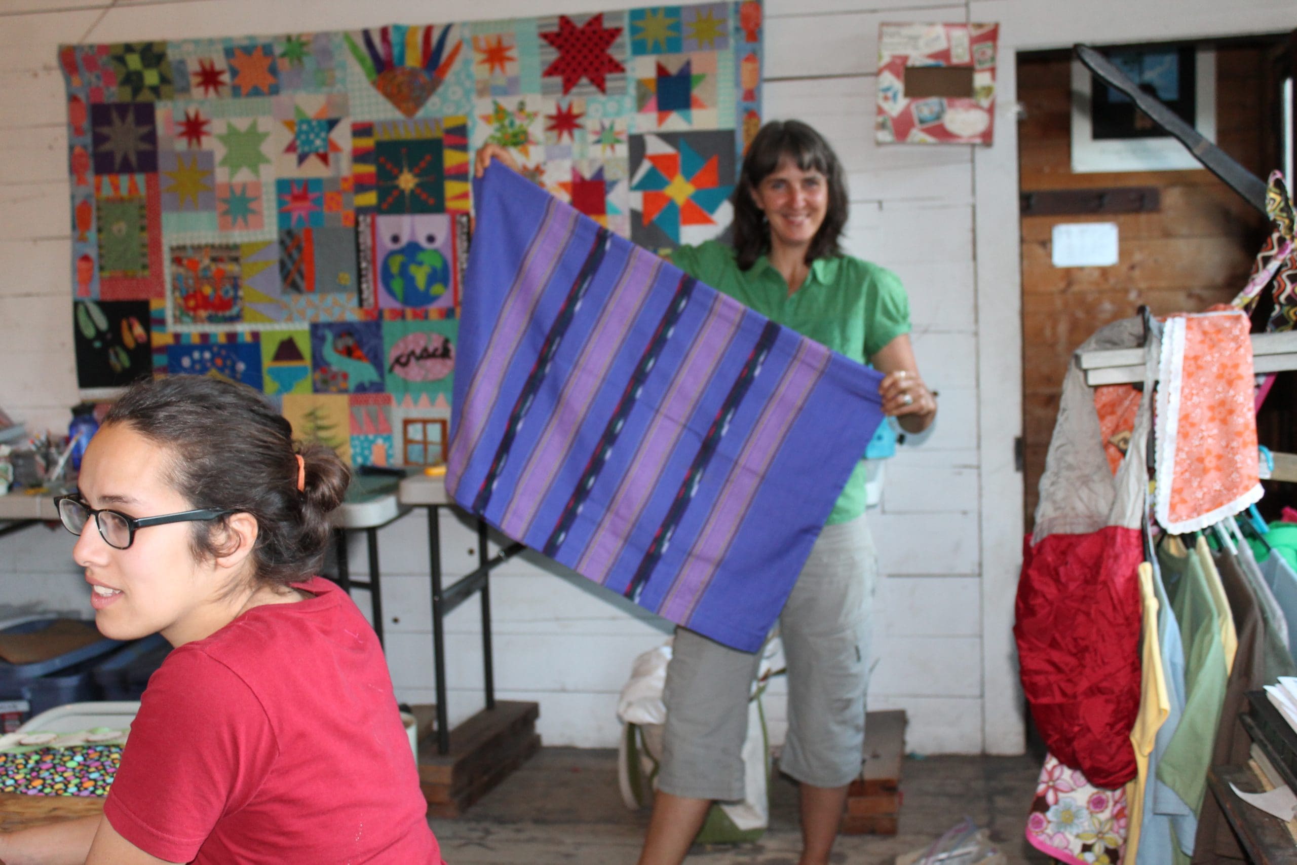 Because the Old Hardware Store is located in downtown McCarthy–a very popular travel destination in the Wrangell St. Elias National Park, we frequently have tourists stop by. At one point a very traditional quilter peaked in to see what we were doing. If I had to describe her reaction to our activities, I would have to say that she was appalled. Fabric was flying, stitchers were cutting without rulers, no one was using a pattern–it was as if a fundamentalist christian had stepped into a witches’ coven. It was an interesting moment for me. I felt a bit chastised, but at the same time, I knew that what I was doing was helping to unleash insane amounts of creativity into the world, and that is always a good thing.
