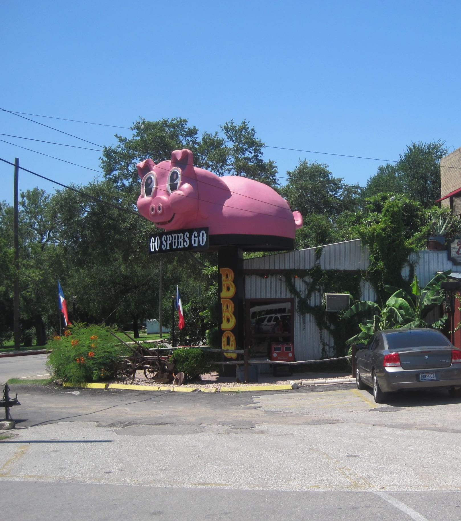 After a great morning visiting Jane’s studio, we headed to the The Witte Musuem to see their exhibit of Fiesta gowns. But first we had a great lunch. BBQ, of course, with Elvis.
