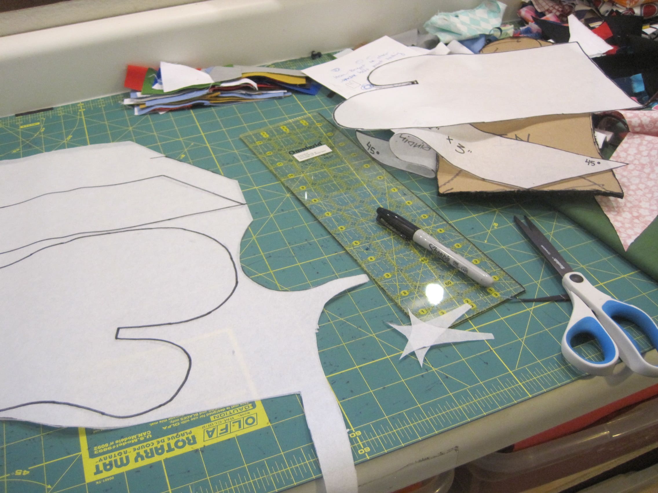Now for the moment when things go awry. I decided that because the mitt is too big to print on regular sized paper, that I would trace, cut, and hand notate each pattern.