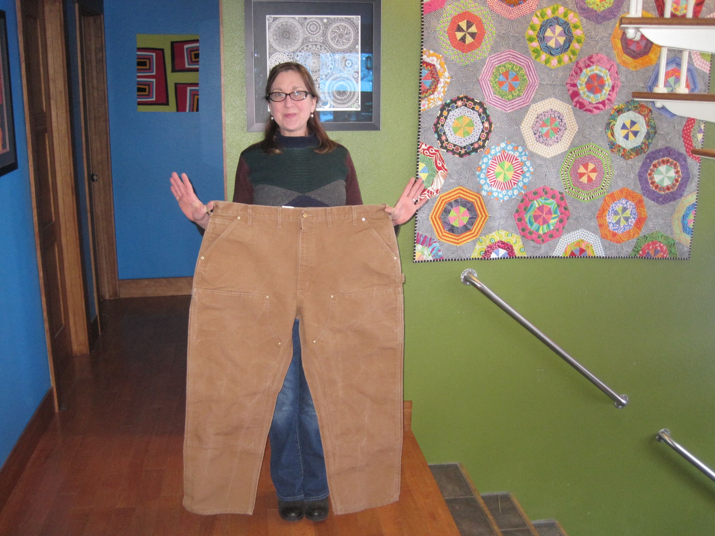 Those of you who have been following my posts about Object Runway know that I have been hunting for Carhartts. My dear friend Beth (Thank you Beth!) even put the call out on Facebook. It turns out only dead Alaskans part with their Carhartts. Fortunately for me, the Thrift Store Fairies heard my plea, and I found these extra EXTRA large Carhartts earlier this week.