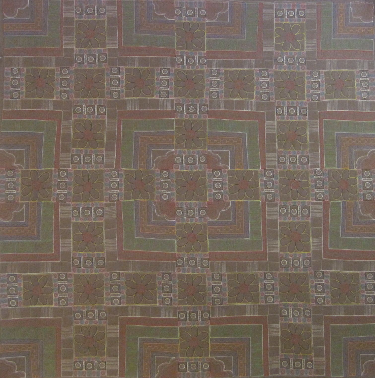 This quilt was started around the same time as TRIBE, and, like TRIBE, was put into storage for being the wrong size to work in a three by three grid format. Now that I am in finishing mode, I pulled it out of storage and plopped it onto the long arm.