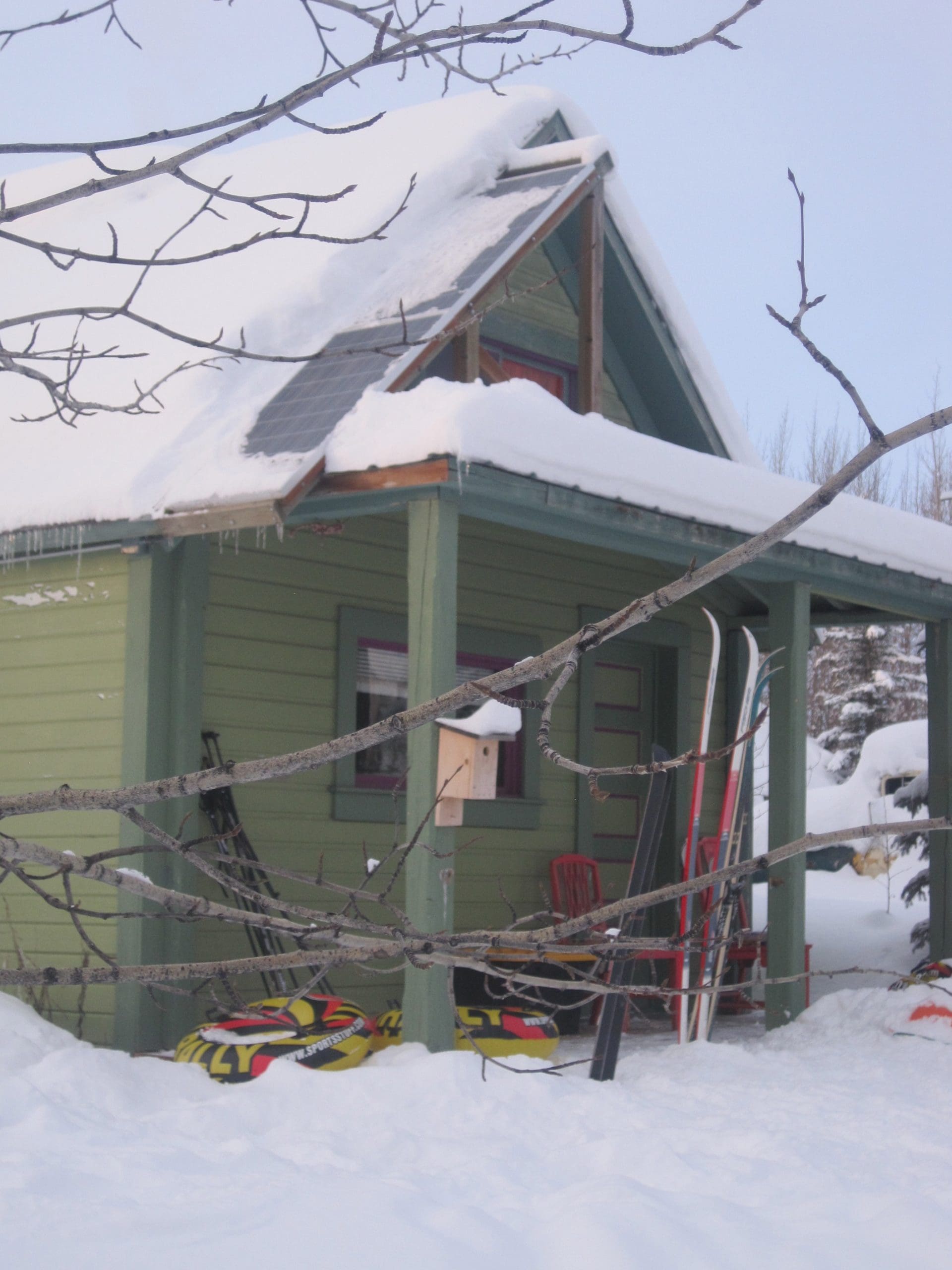 In 2010, we became neighbors in downtown McCarthy. Here are our cabins in the winter. Ours is green. Grandma Patt’s is red.