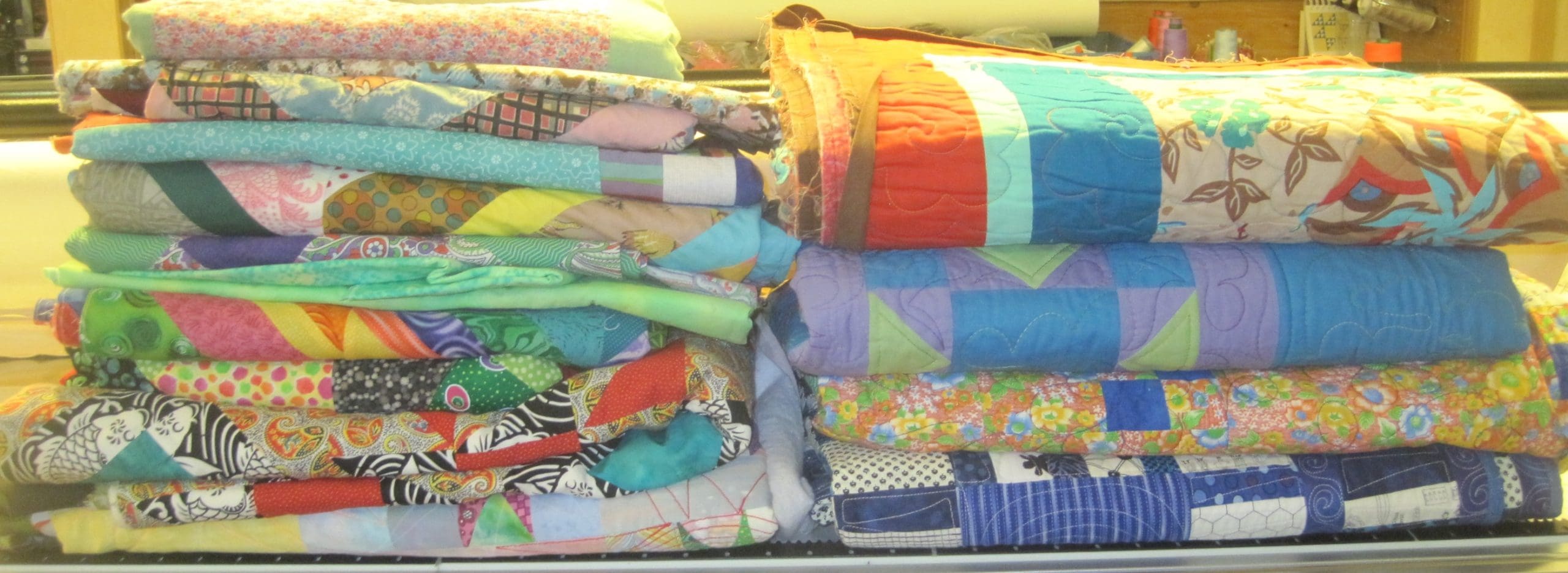 I selected 14 completed quilt tops to finish. (I hope no one out there is going to judge me on this. ) For starters, I want to share the quilts I finished for our Alaskan Grandma Patt.