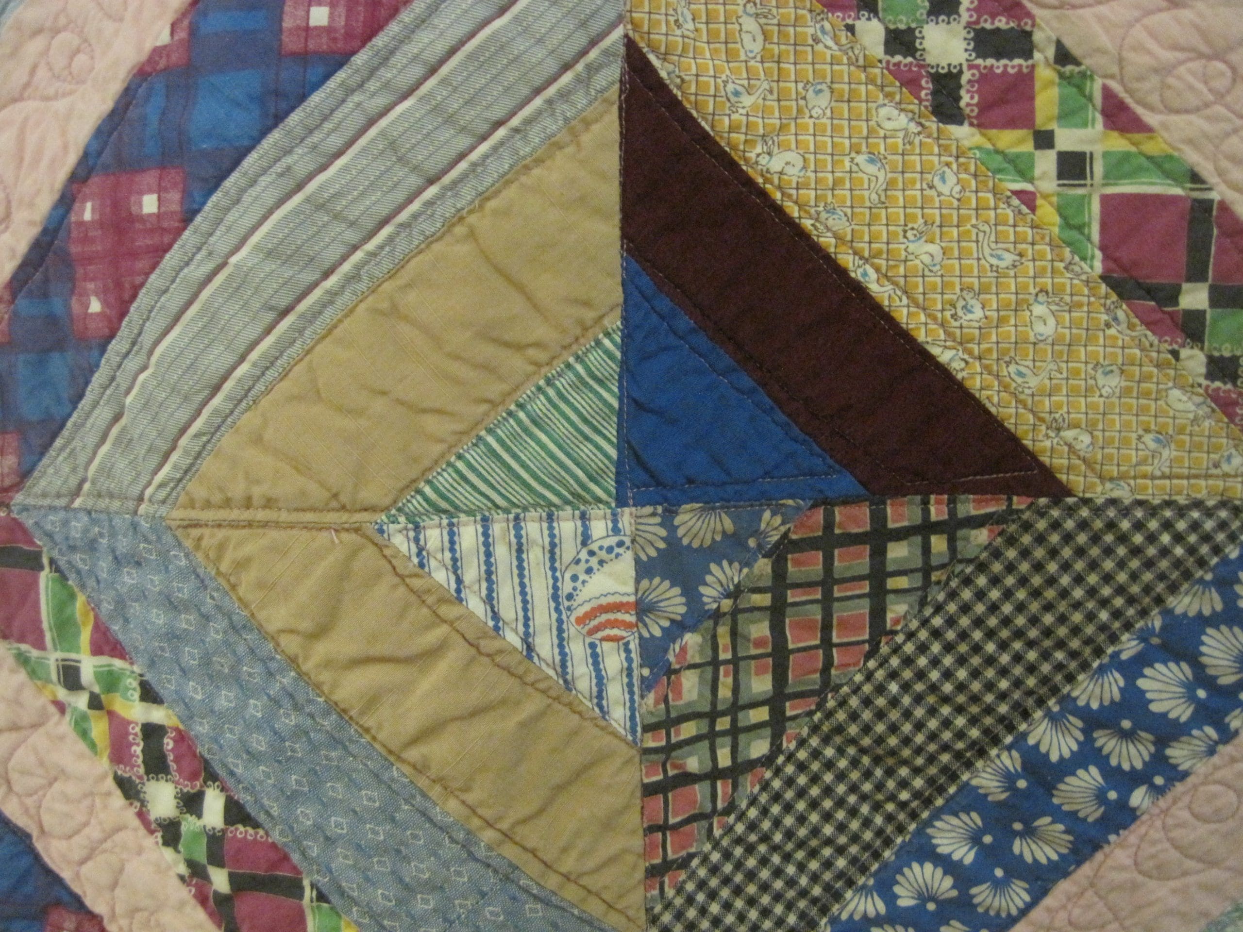 I had two old time quilt tops in my stash, and I knew they would make great additions to her cabin decor. They are nothing fancy, so my hope is that Patt would use them up. That was five years ago.