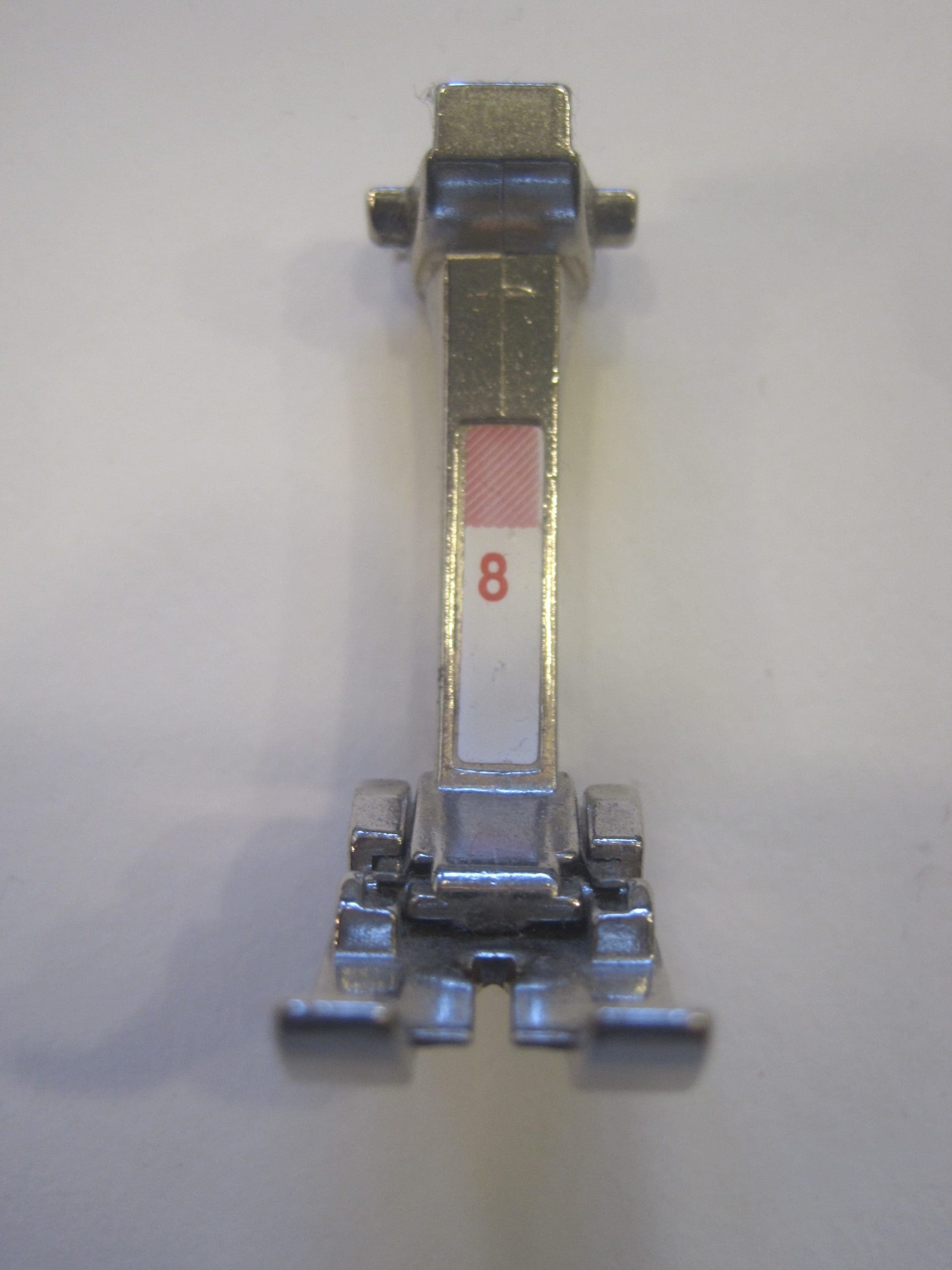 THE JEANS FOOT (Bernina #8) I actually tried to become a Janome machine lover, but I couldn’t do it. Two reasons–I needed my heel tap needle up/down, and to my knowledge Janome does not make a Jeans foot. I think of my Jeans Foot as the almost Walking Foot. It gives me great control with thick fabrics (think bindings) while given me MORE visibility than I have with a walking foot. Try it, you might like it. I use my Jeans Foot when working with thick fabrics, attaching bindings, and top stitching wools. See how it has a very small hole for your needle? You can not zigzag with this foot. You will break the needle.