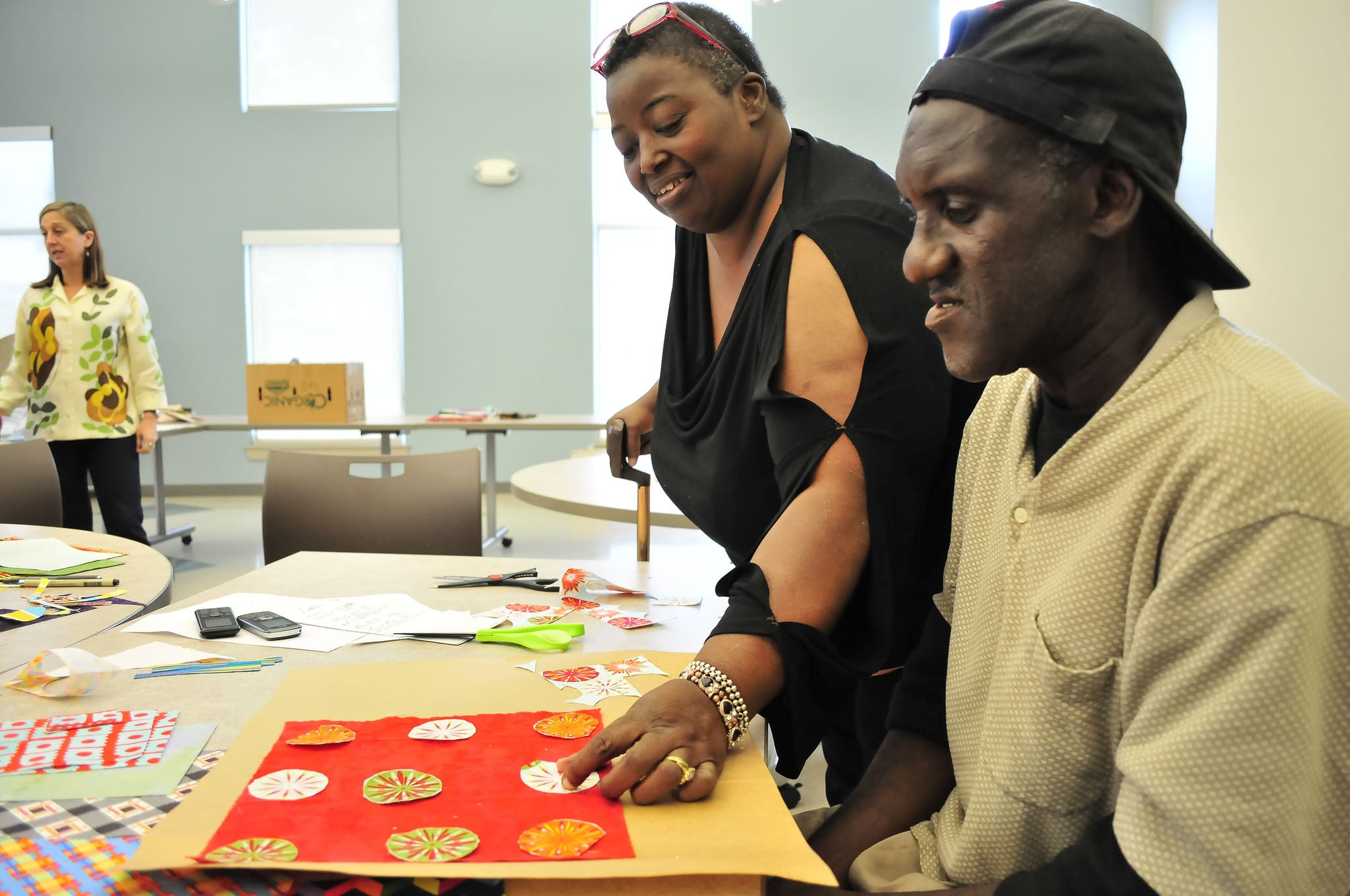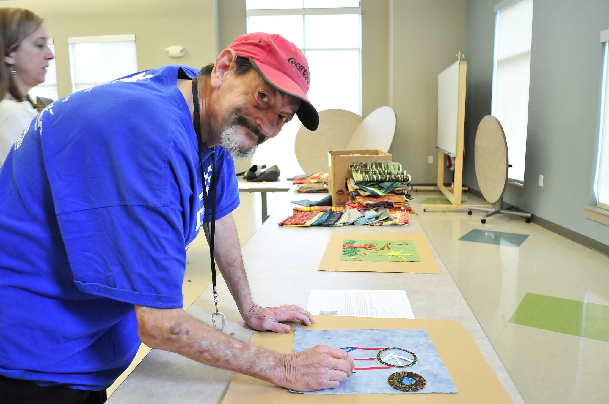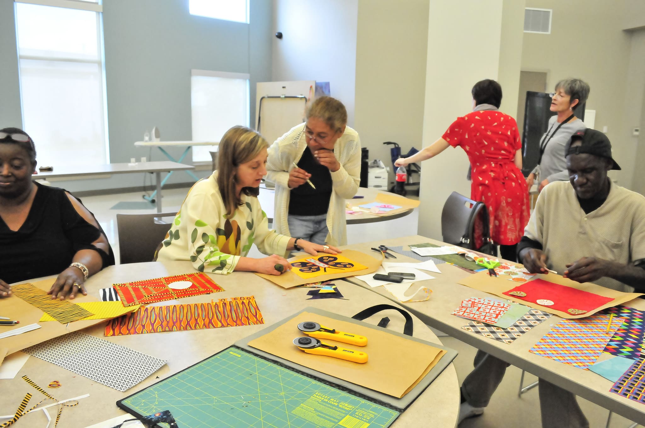 We worked on stitching pillow cases, quilt blocks, and community.