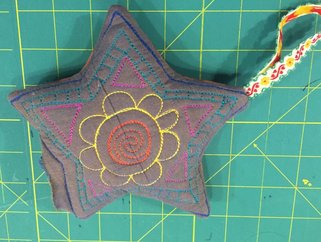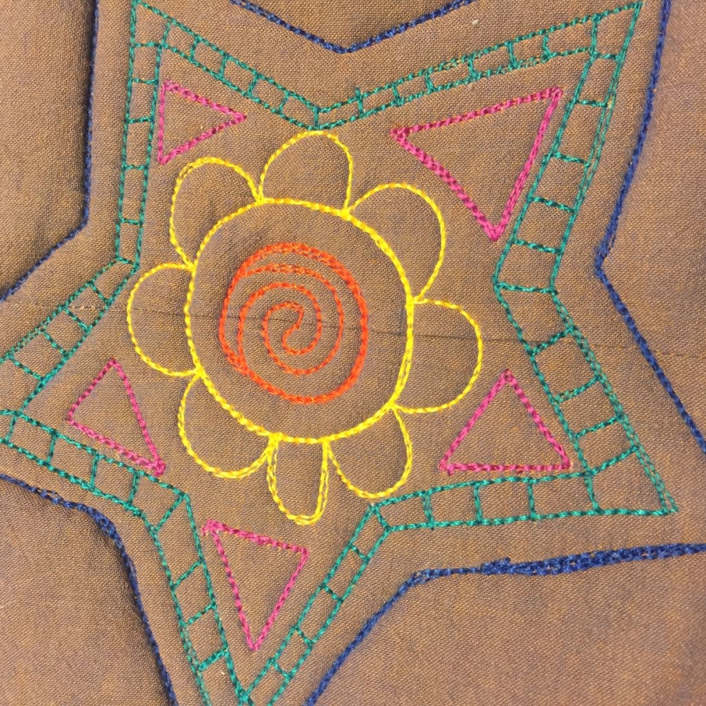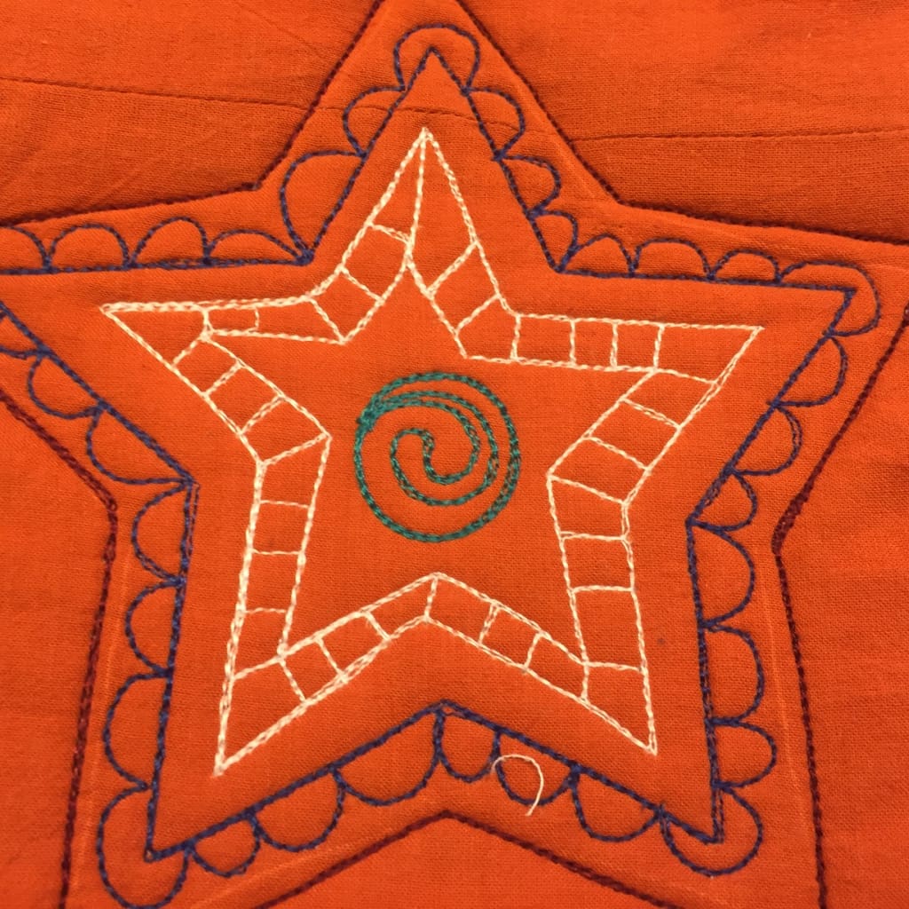 Create a quilt sandwich and begin quilting around your star. I like to start with the edge of the star and work inward.