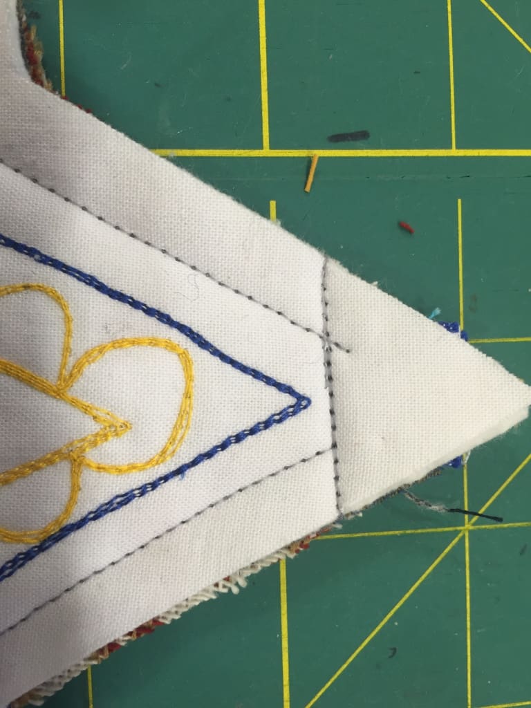 If you are going to use a wider trim for your hanging tab, you will need to stitch THAT star point like this.