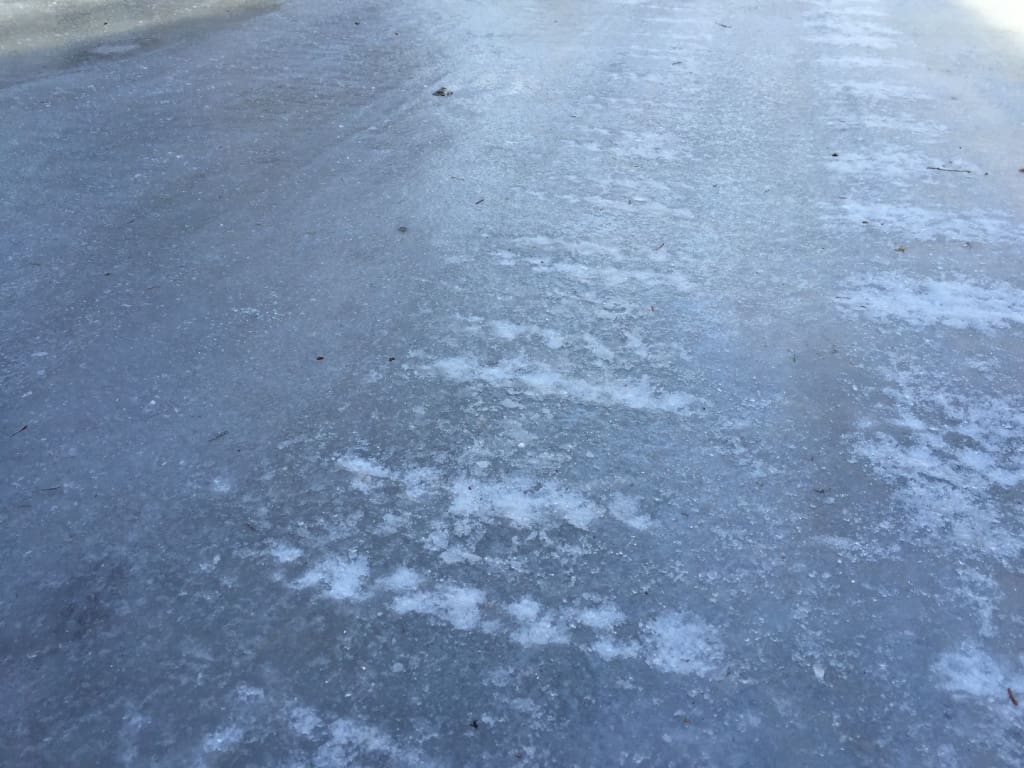 You really do need glacier style cleats for walking on this stuff. These are Kahtoola MICROspikes, and they are worth every penny.