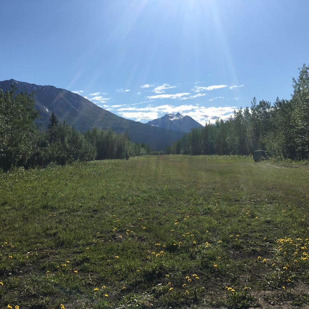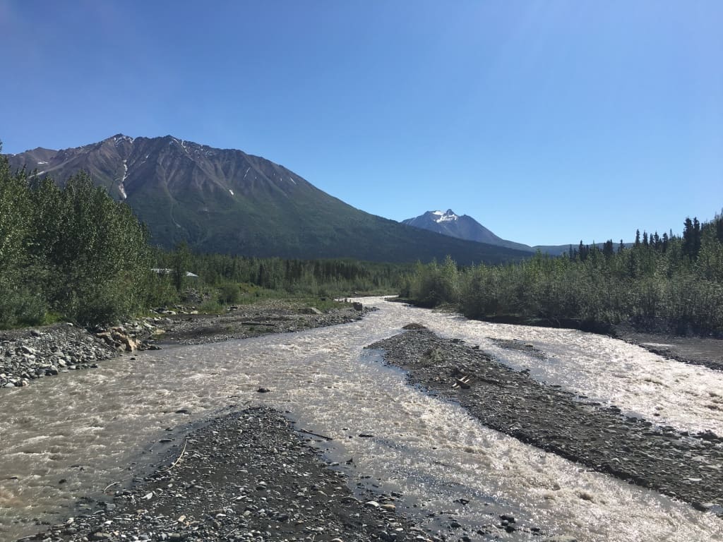 My life has been crazy busy and to be here in McCarthy, here in my tiny plein air studio, here with my bits, here in the hot never ending day light of our approaching solstice fills me with joy.