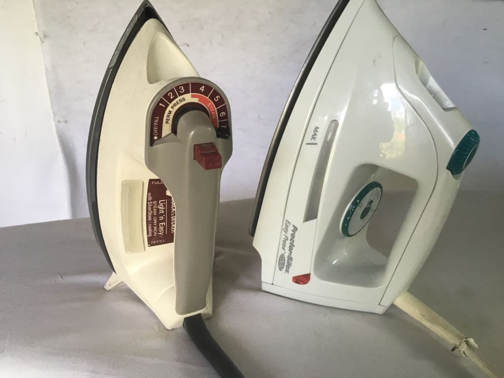 Recently, I was at Value Village, and I found these two retro irons. I paid $14 dollars for the pair of them.