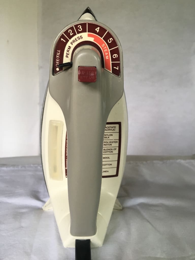 I was good at finding quality vintage irons for reasonable prices on Ebay, but the shipping on these beast is almost always twenty bucks or more. And sometimes the seller might kind of sort of hide the condition of the ironing surface, or the cord, or the water tank.