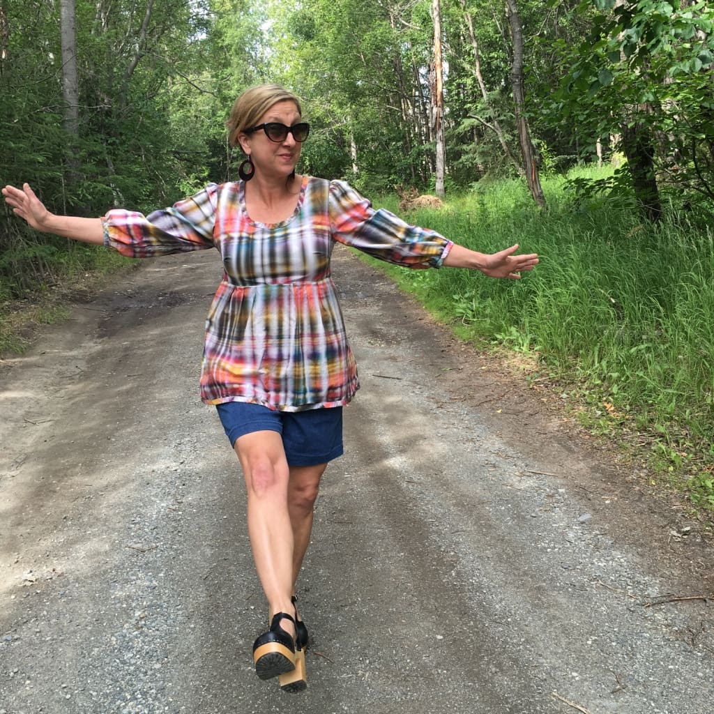 • Dear Audrey–I love wearing my own clothes. I love it more than I do making them. I should write a post about what is like to go back and forth between clothing and quilts. That is a great Idea and I don’t have the answer yet. We take a lot of photos for two reasons. One–sometimes it takes 60 photos to get a good one, although both the photographer and I are getting better at that. And two–I hope to animate the project when it is done. We will see. Thank you for visiting! I like the road too!
