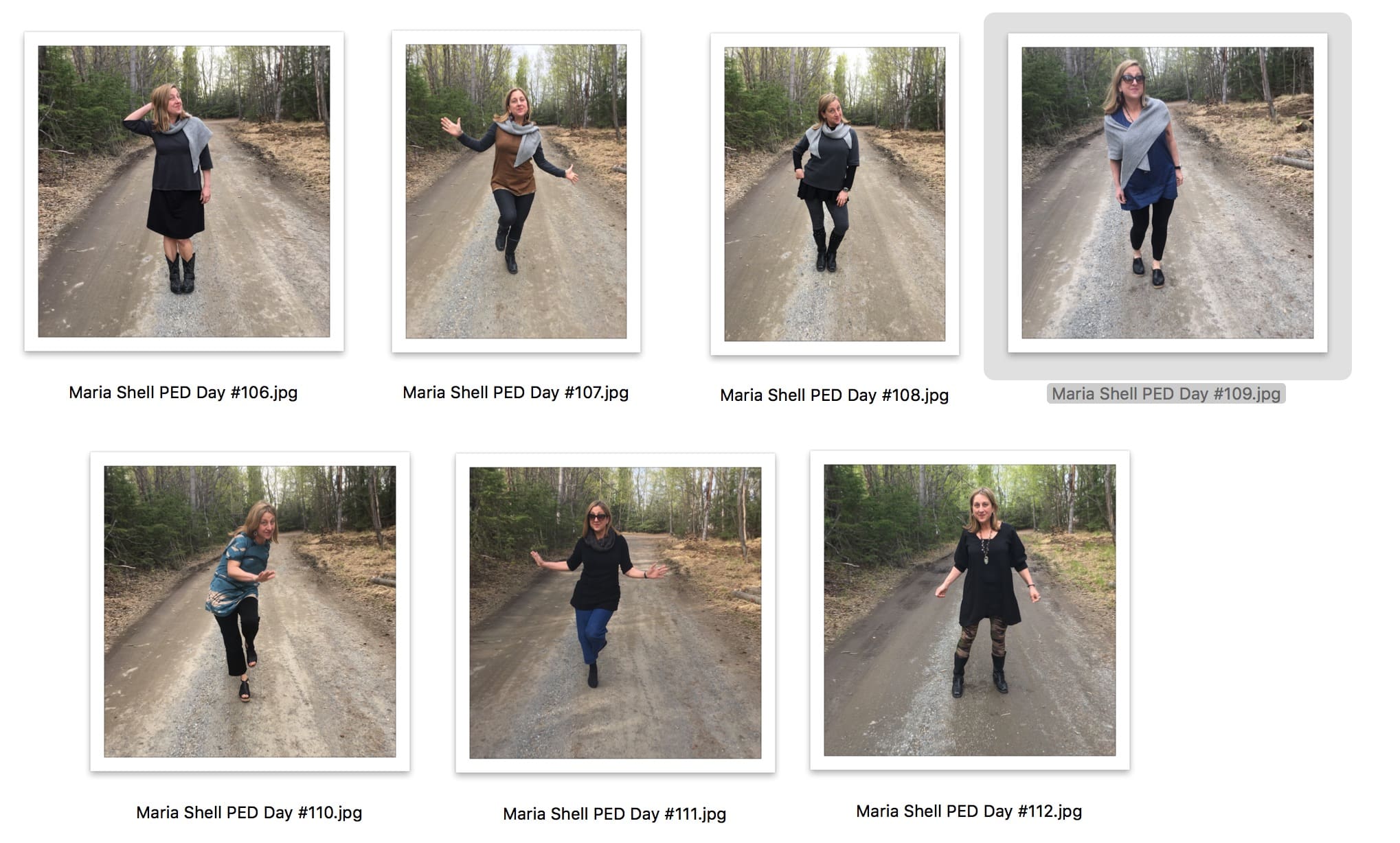 We finally settled on the road we live on.  It is a very short dirt road maintained by us and our neighbors across the street. Here is the first full week of shooting in the road. Now that is a way better visual.