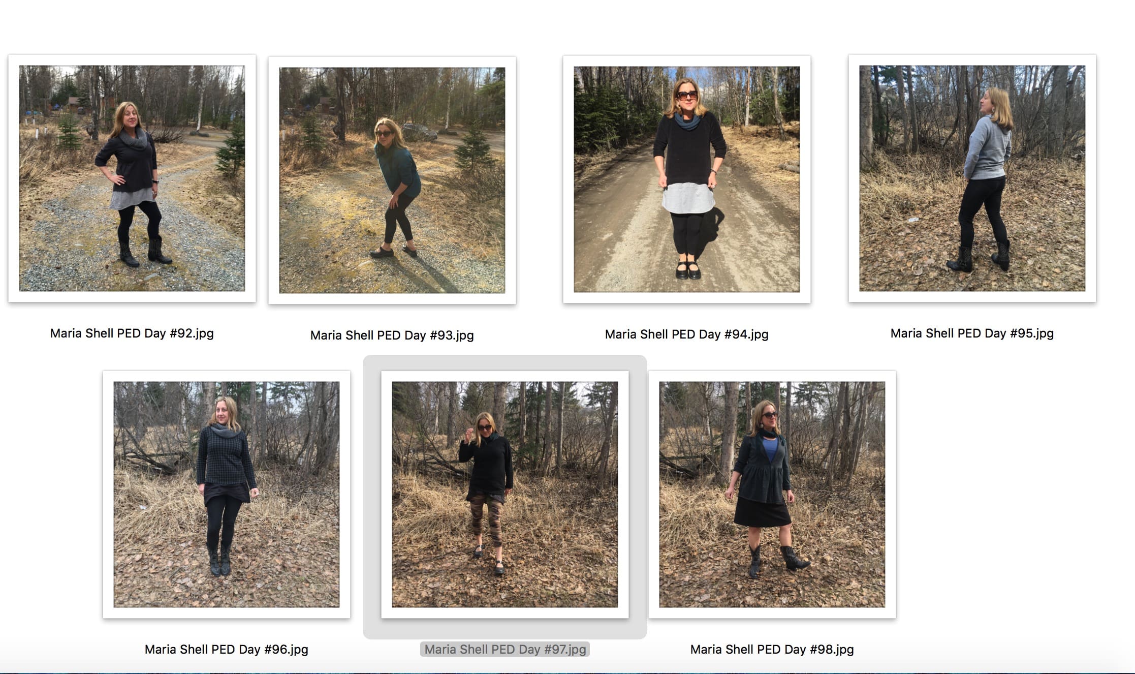 I write down each day’s clothing in a calendar along with the “number” day of the project and the name of my photographer—sometimes Tripp isn’t around when I need him.