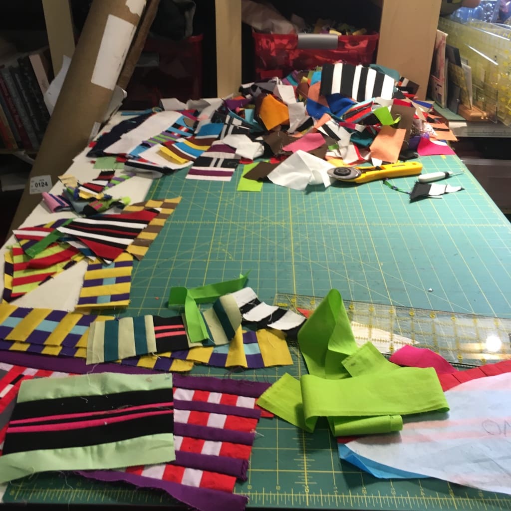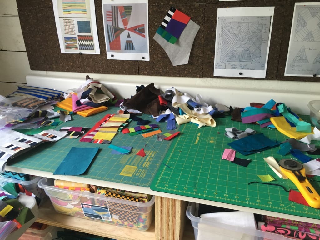 Your floor looks like mine when I am in the midst of something! I am working on a mosaic and cutting little bits off of blocks and the middle of my desk looks like a scrap heap on my mat! It sounds to me like the book will be fantastic; and your trips too. Try to have some fun along the way! Enjoy the last bit of summer if you can.