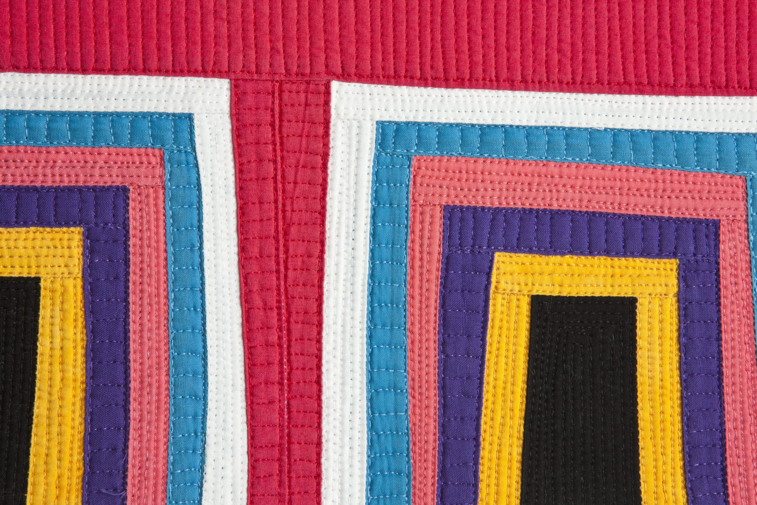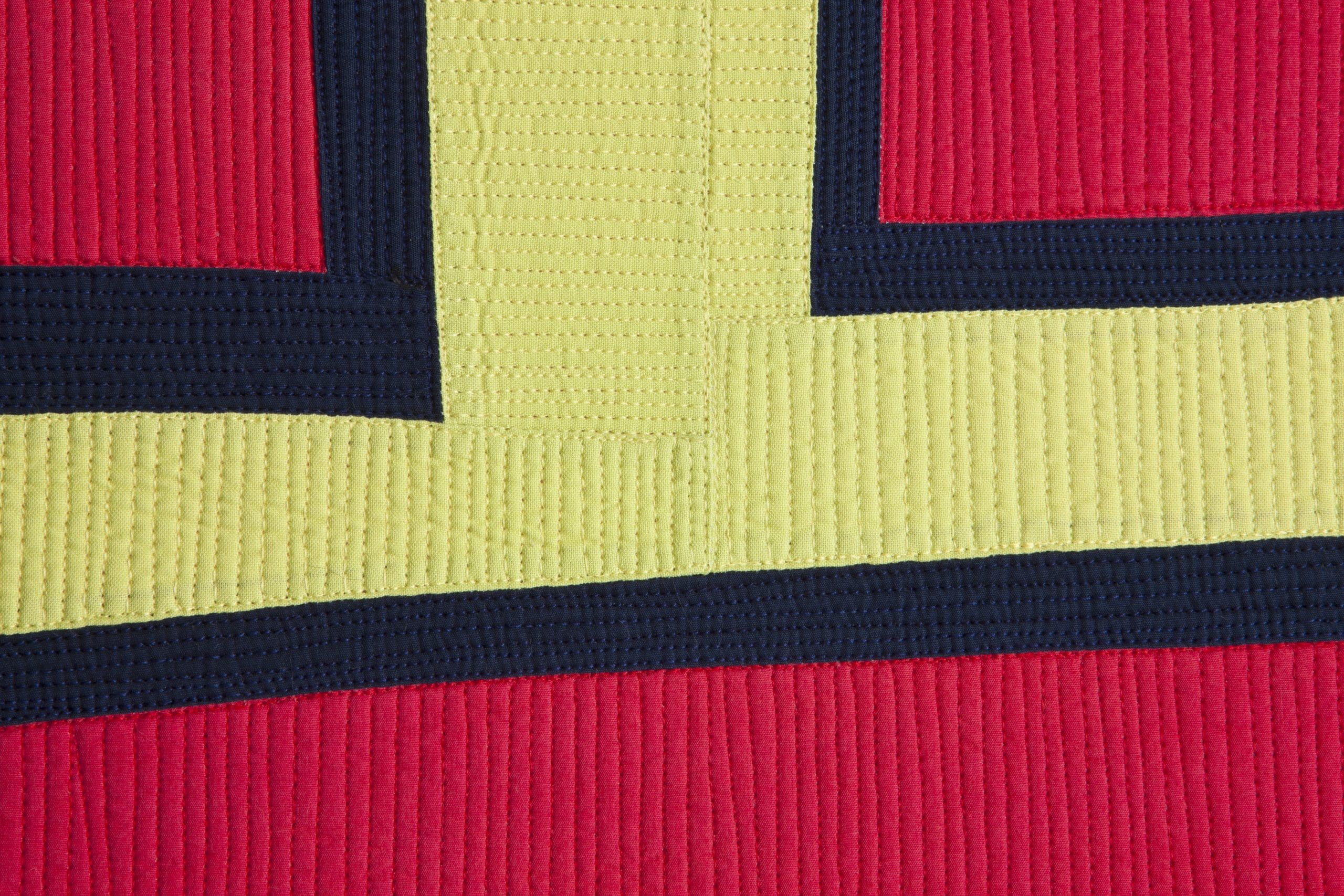 For me, what is first is color, line, shape, and if at all possible the use of traditional pieced quilt patterns. My goal is to create exquisite tension between these things. I frequently use pattern and repetition to achieve that goal.