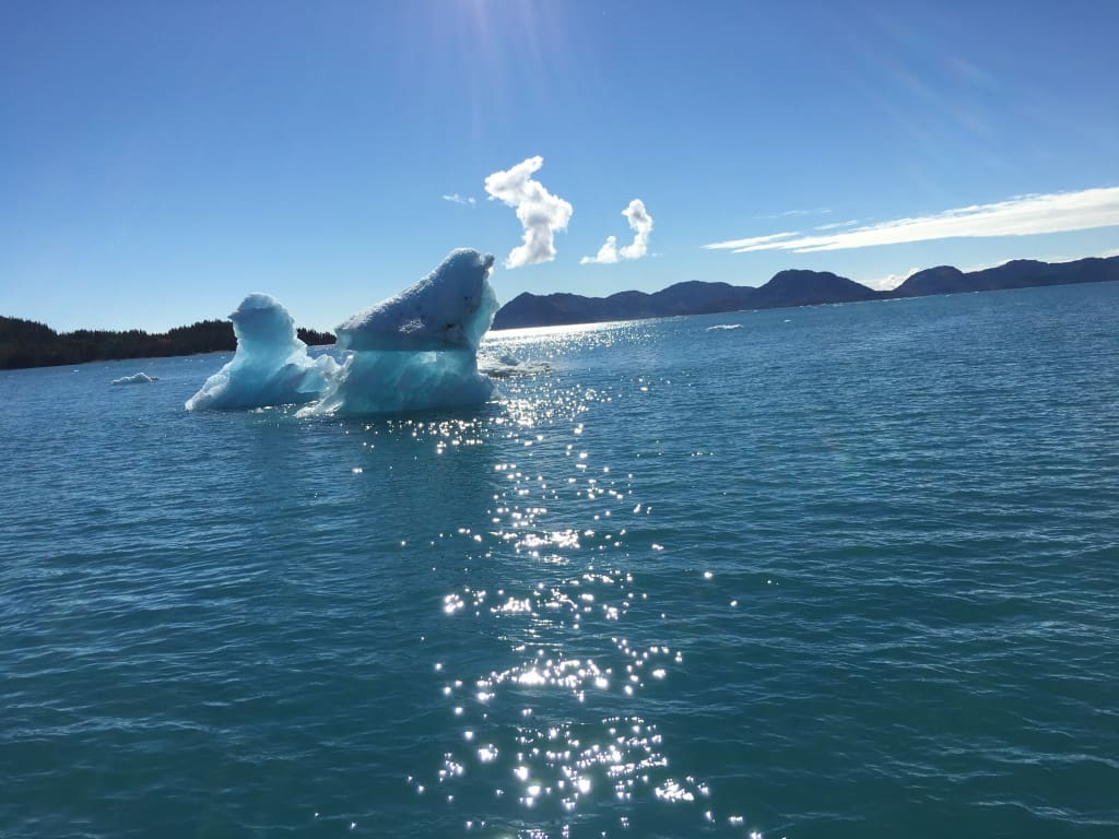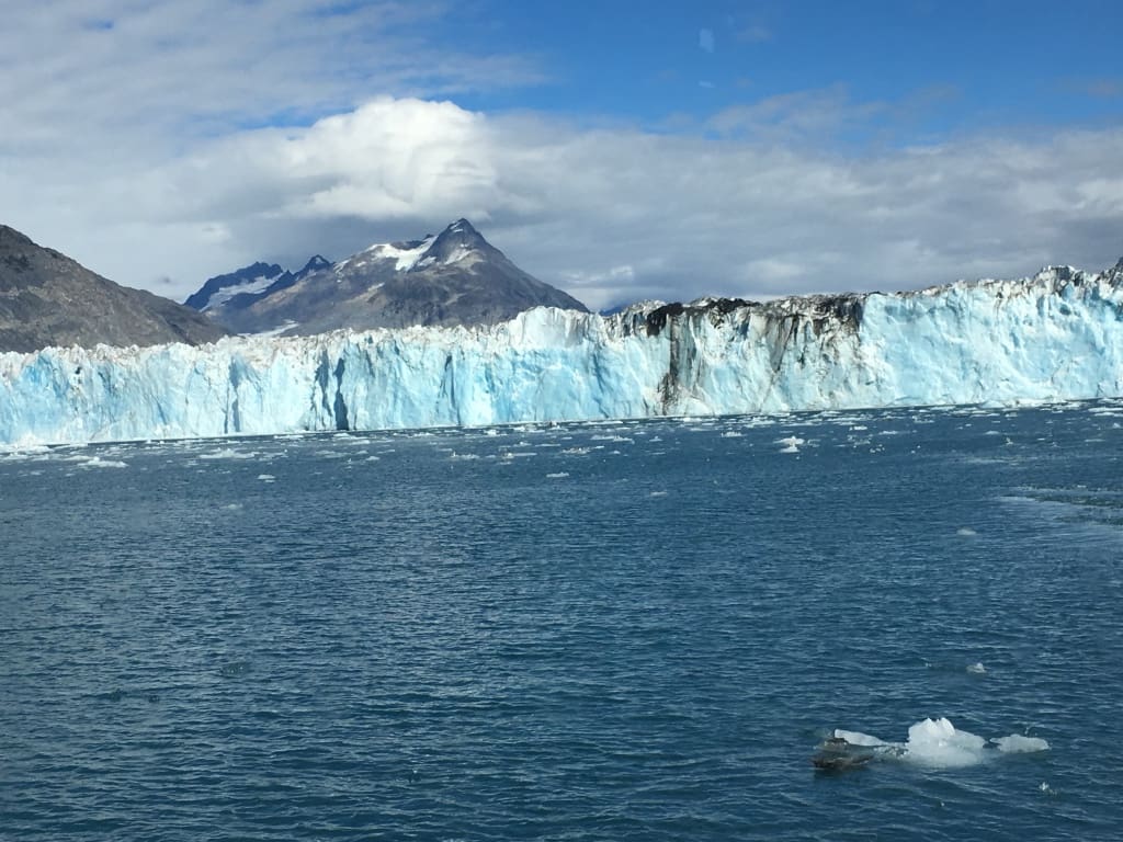 The photos tell it all. It was amazingly beautiful. We had a clear windless day, perfect for being out on the water and seeing the glacier and wild life.