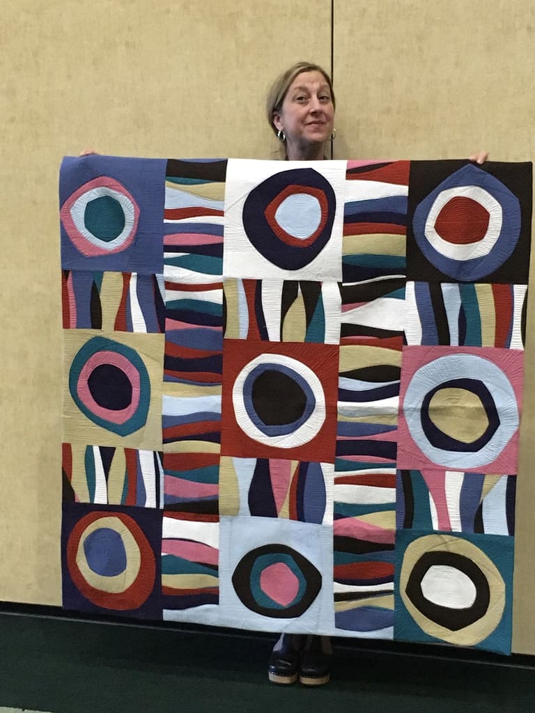 Friday’s workshop was Making Prints out of Solids—Lines and Shapes. That class was so packed with information, I forgot to take pictures. I learned a very important lesson about teaching that day. Just because I know a lot about improvisational piecing does not mean I need to share all of that information with my students in a six hour class. We all thought our heads were going to pop off, but they did not.