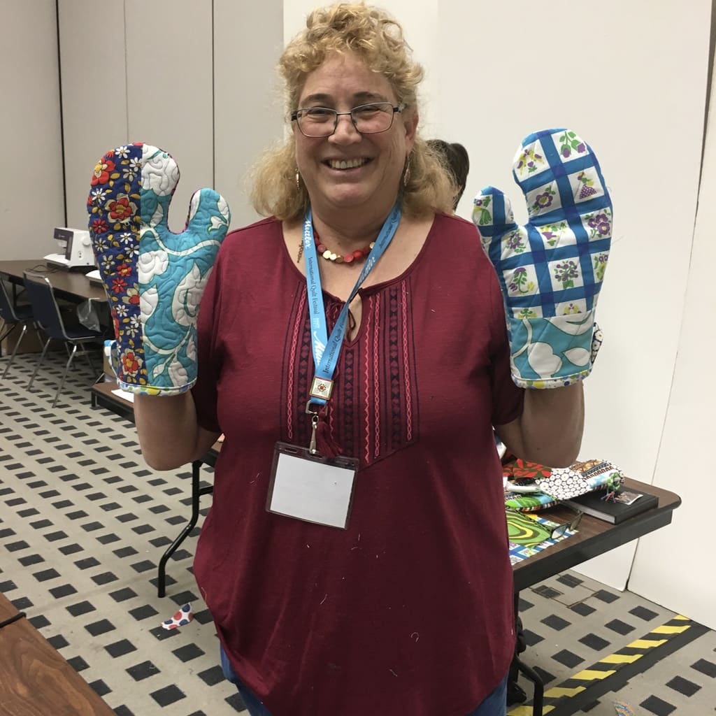While in Houston at the International Quilt Festival earlier this month, I taught an Artful Oven Mitt class. It was awesome!