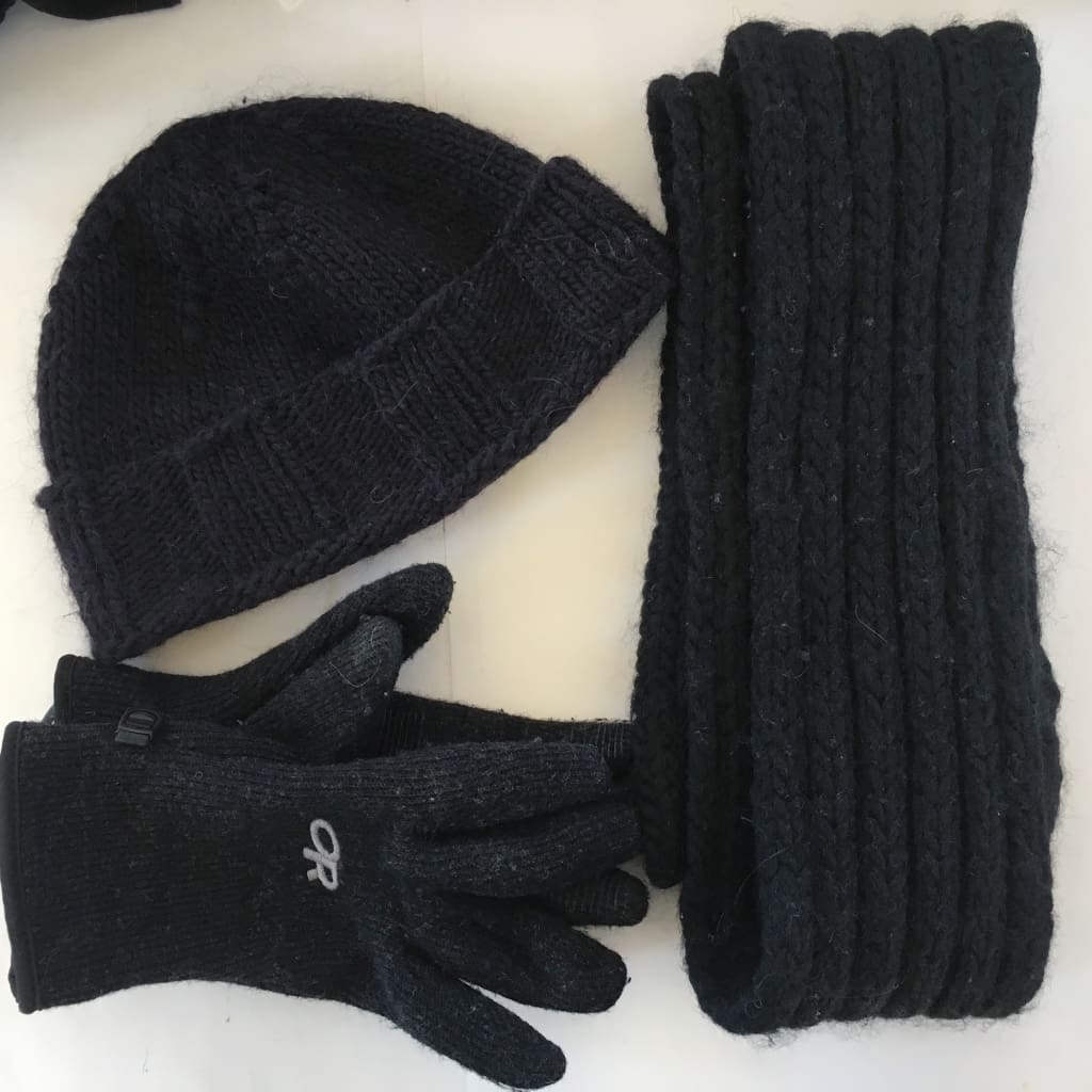 My normal walking attire consists of a wool hat, scarf and gloves. I am very fond of these gloves. They provide maximum warmth with maximum mobility.