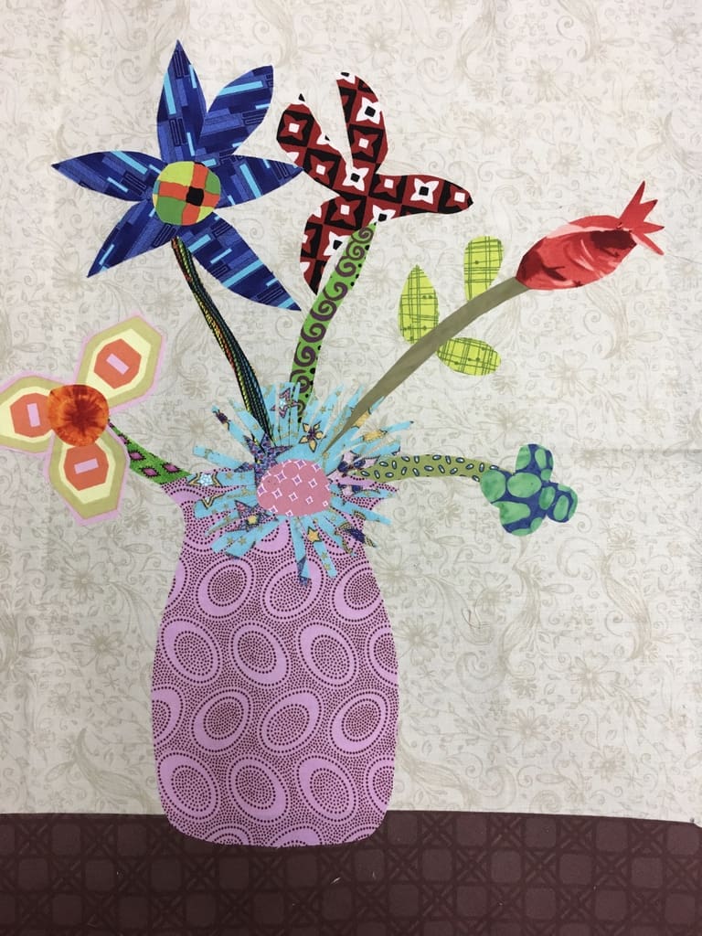 I have written about this workshop a couple of other times. The first one is called Spring Bouquet and the second one is called Modern Broderie Perse @IQA 2015.