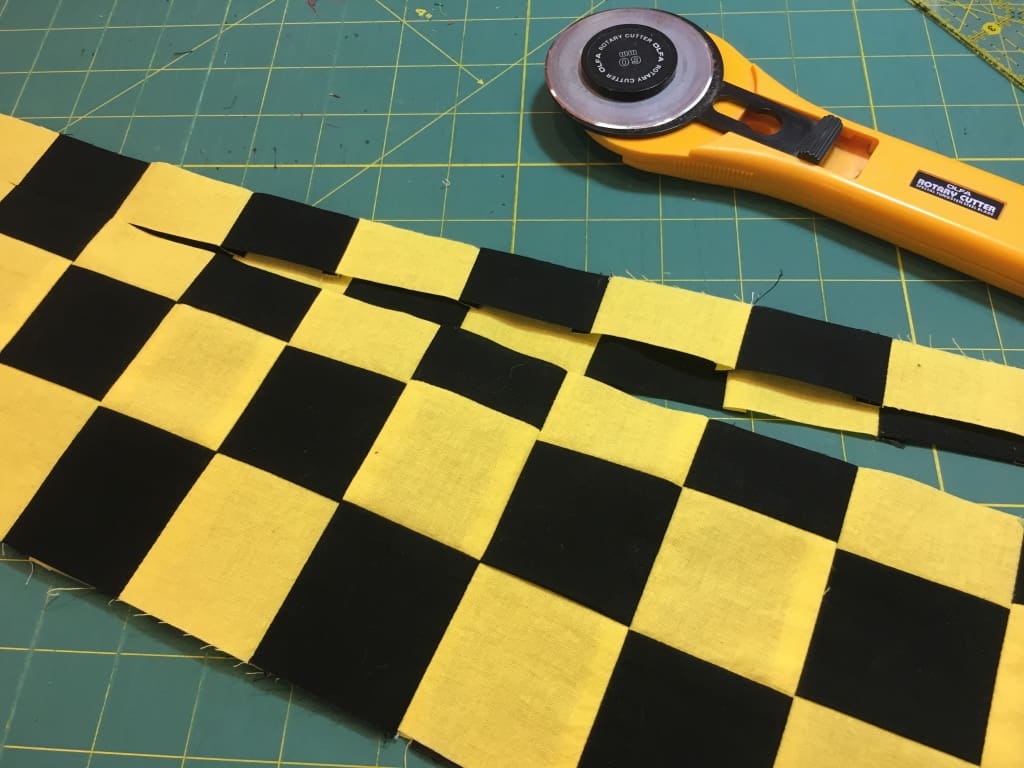 Sometimes an idea doesn’t work or needs tweaking. I decided to change the two major columns from polka dot rows to a checkered print (also known as a continuous nine-patch). Graphically I needed something that was bolder, and I thought the checkered print would do the trick.
