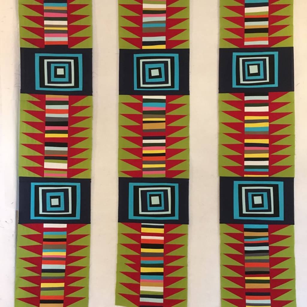 I used American Made Brand cotton textiles to make BIG TRI, which is on the cover of the book.