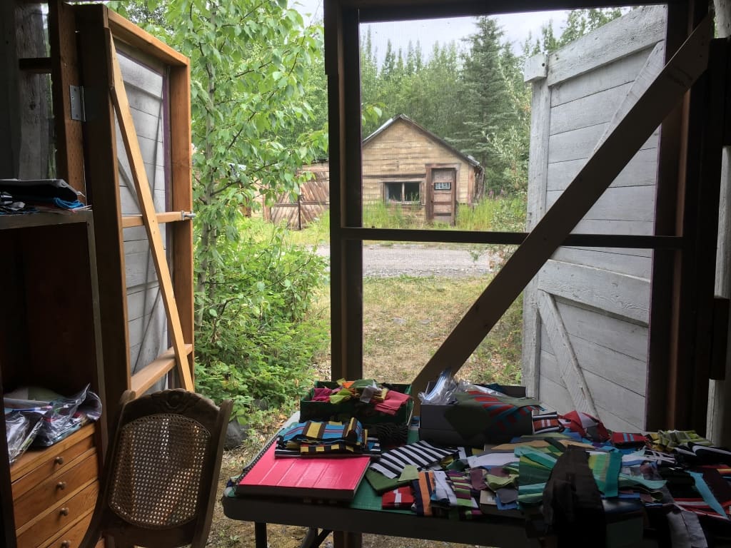 I am working out in McCarthy, Alaska right now. It doesn’t get any better than this. I am stitching away in the Wrangell St. Elias National Park. This is our cabin looking pretty spiffy with a new paint job. Around back on the right side is my studio.