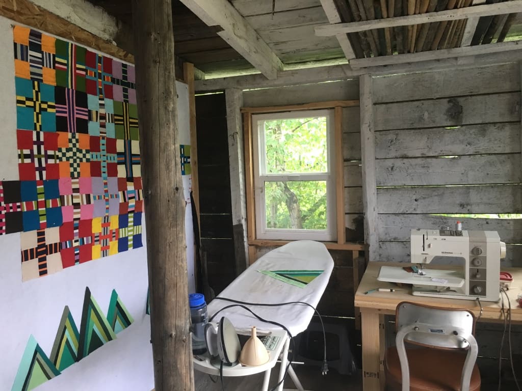 I always worry about the “state” that my quilting space is in. But now that I see a real artist at work, I see that my own space is just a creative retreat.