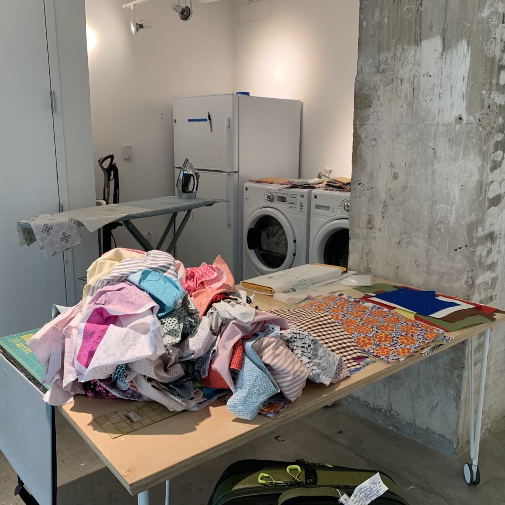 I used the laundry room of the Crosstown artist in residency space to sort, iron, inventory, and prep.