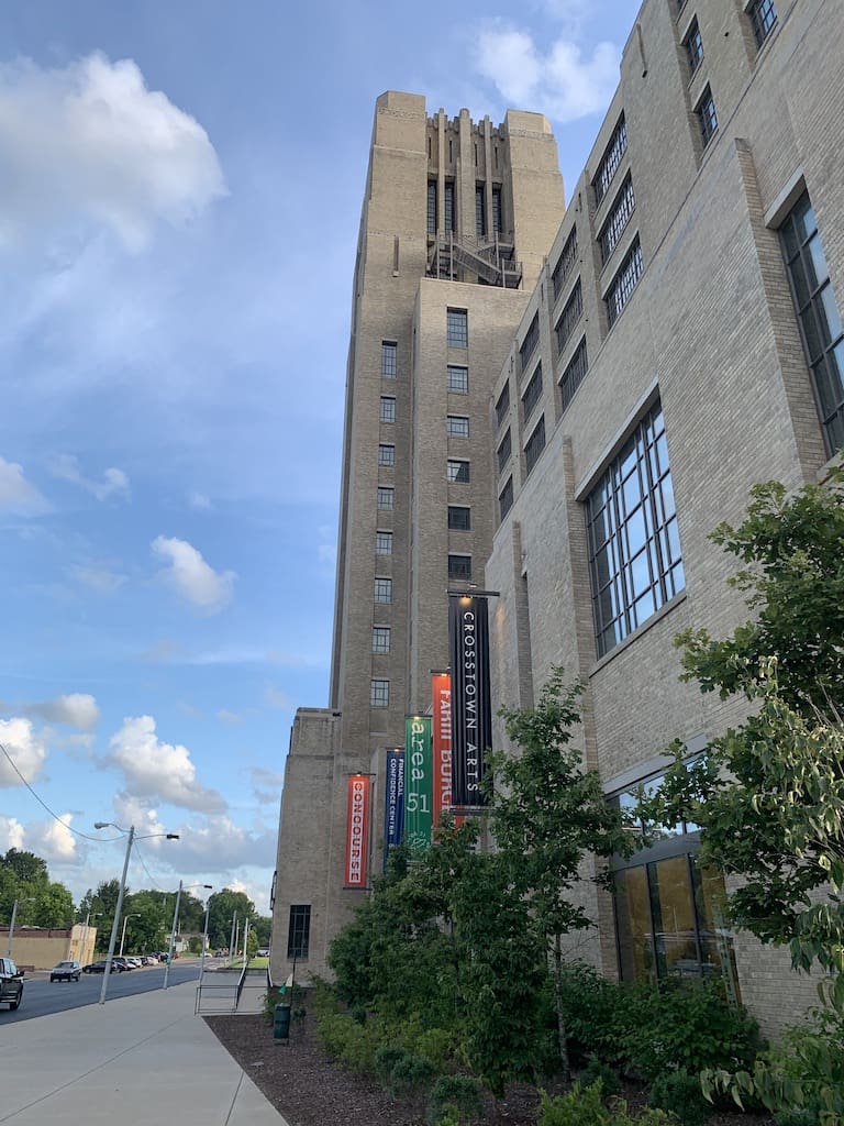 Crosstown Arts is a located in the Crosstown Concourse which is a rehabbed Sears Distribution Center.