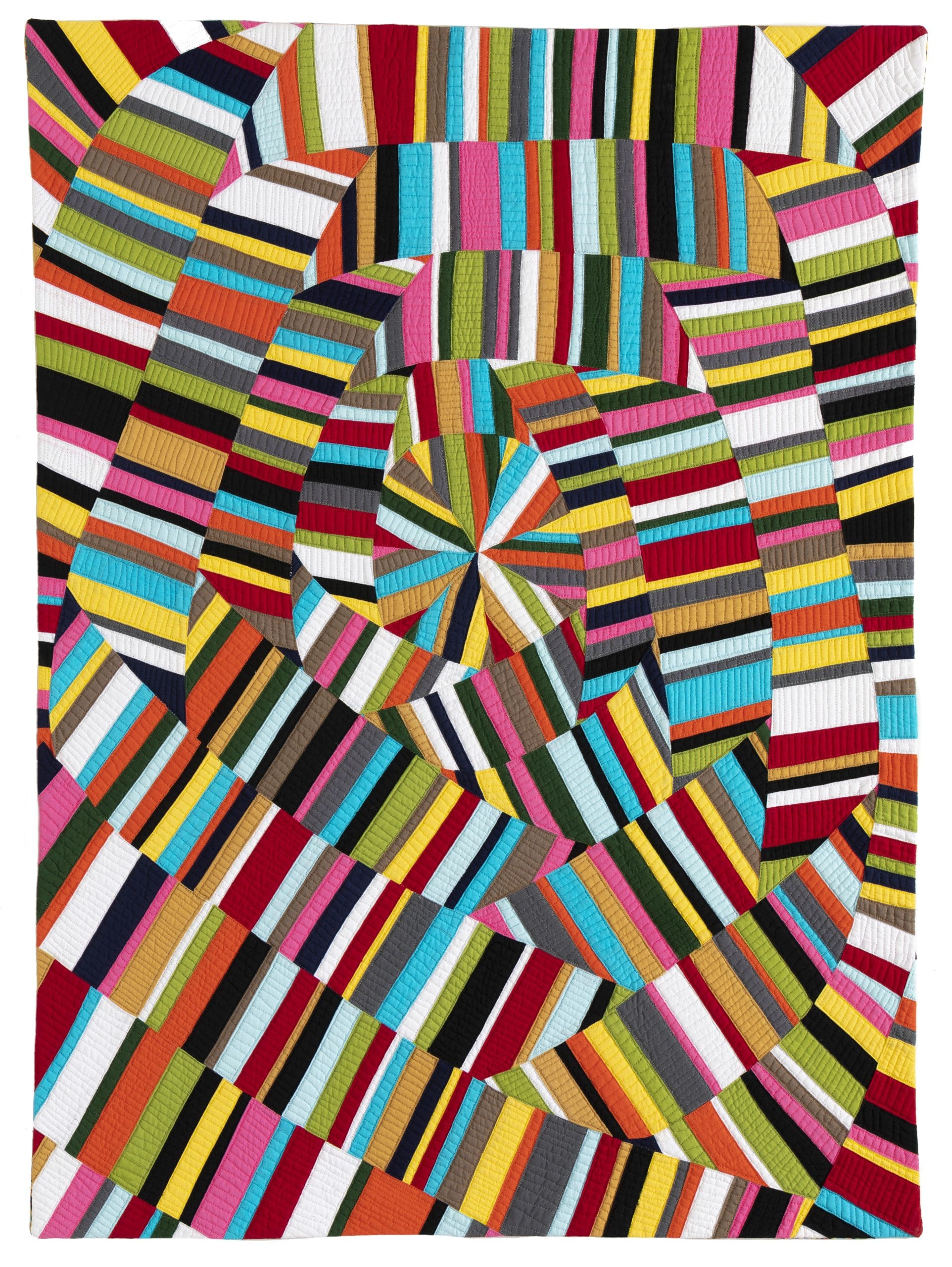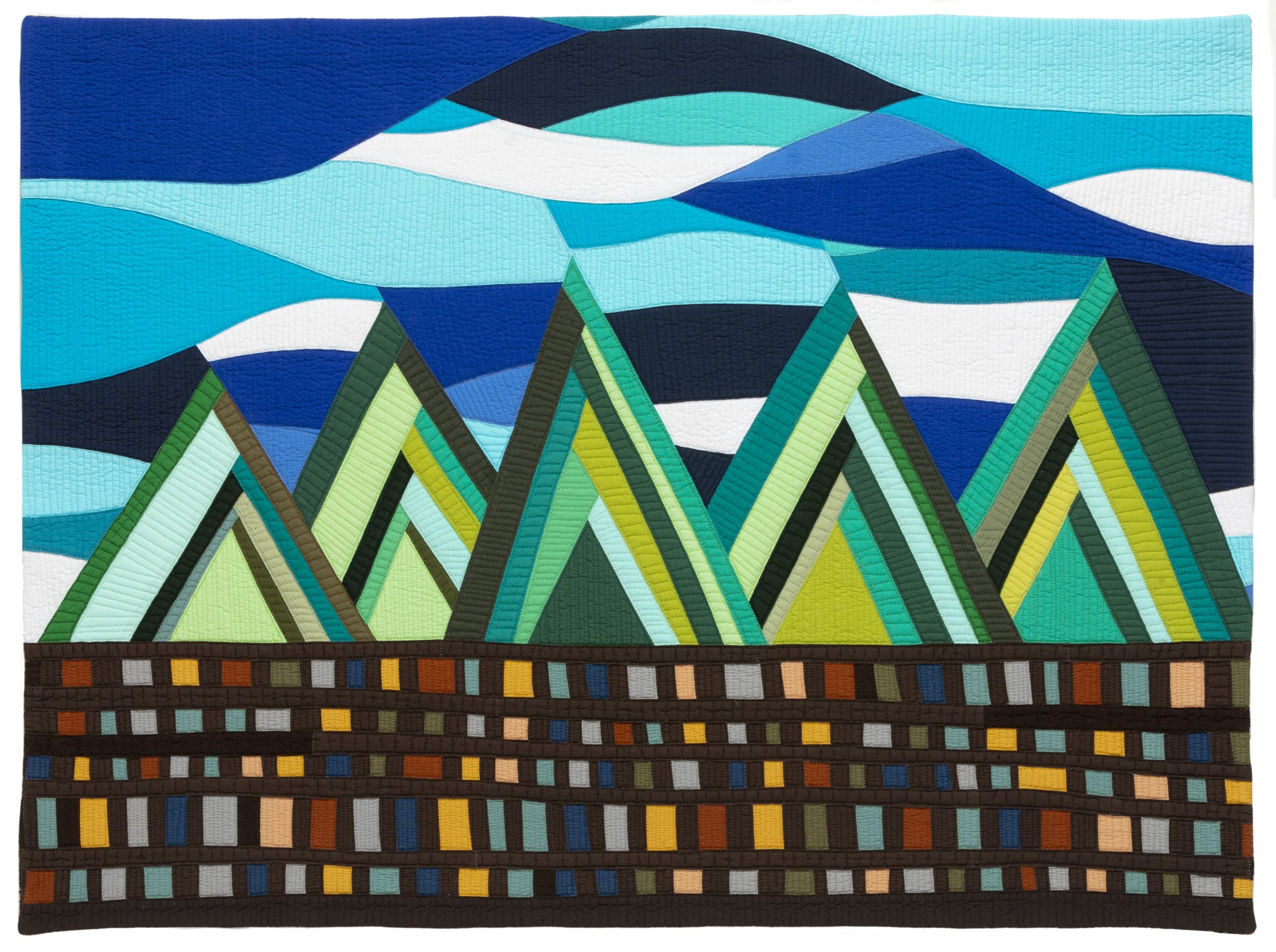 “By August of 2017, eleven artists had agreed to join Cloth in Common. A website and blog and calendar were created. We discovered online language translation applications! Themes and sizes, as well as the title of our group were discussed, debated, and agreed upon (through emails). It was decided that members would take turns presenting the group with a bimonthly artistic prompt. For our first round of prompts, we agreed to come up with themes that are UNUSUAL. Artists have two months to make a quilted response to the prompt given. We also take turns presenting a short essay of our thoughts about the prompt every week on our blog.