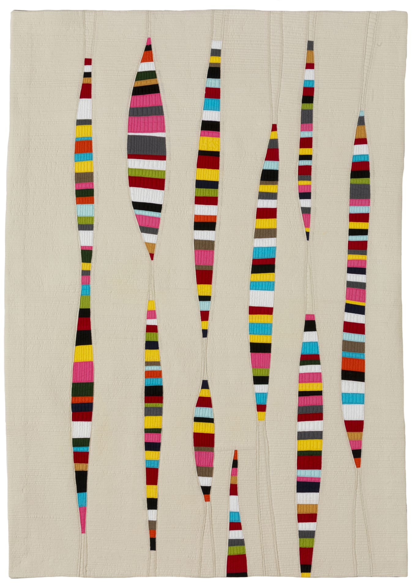 I’m a huge fan of Kona solids. The very fact that they’re not as tightly woven, as you mention, to me is a plus, not a minus. If you’re improvisationally piecing curves or even freehand “straight lines” it’s wonderful to have a fabric with a little bit of give that will ooze itself into place even if the pieces aren’t precisely the same size or slant.