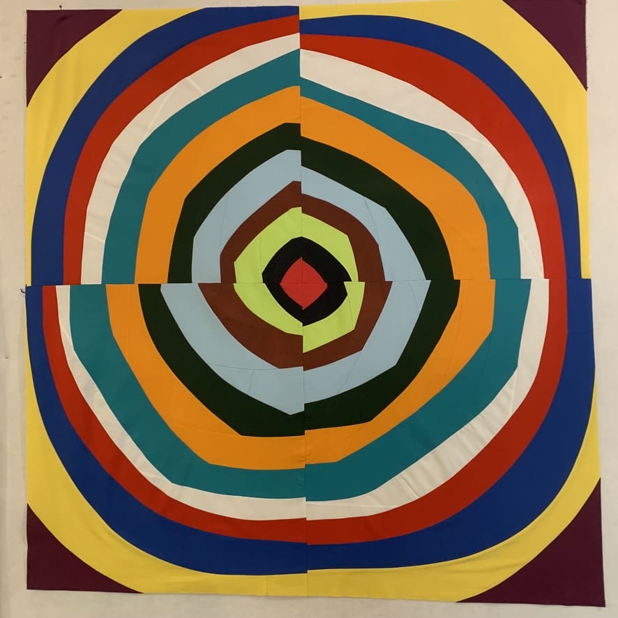 Once students get the feel for creating improv linear curves we begin our exploration of Log Cabin circles.