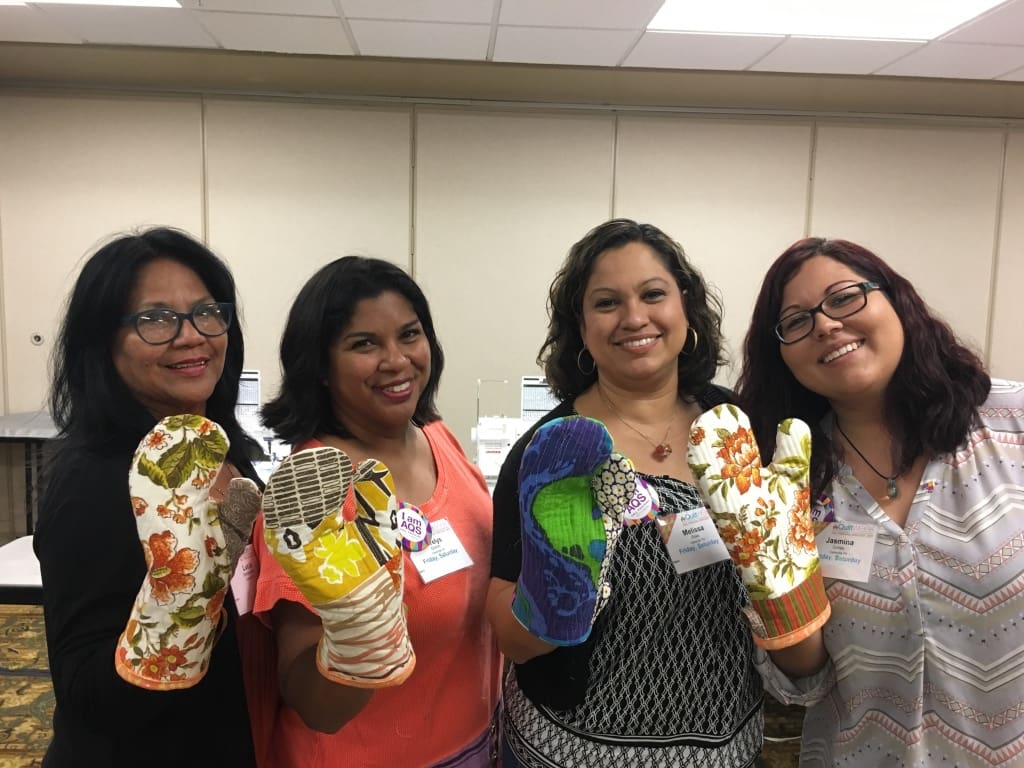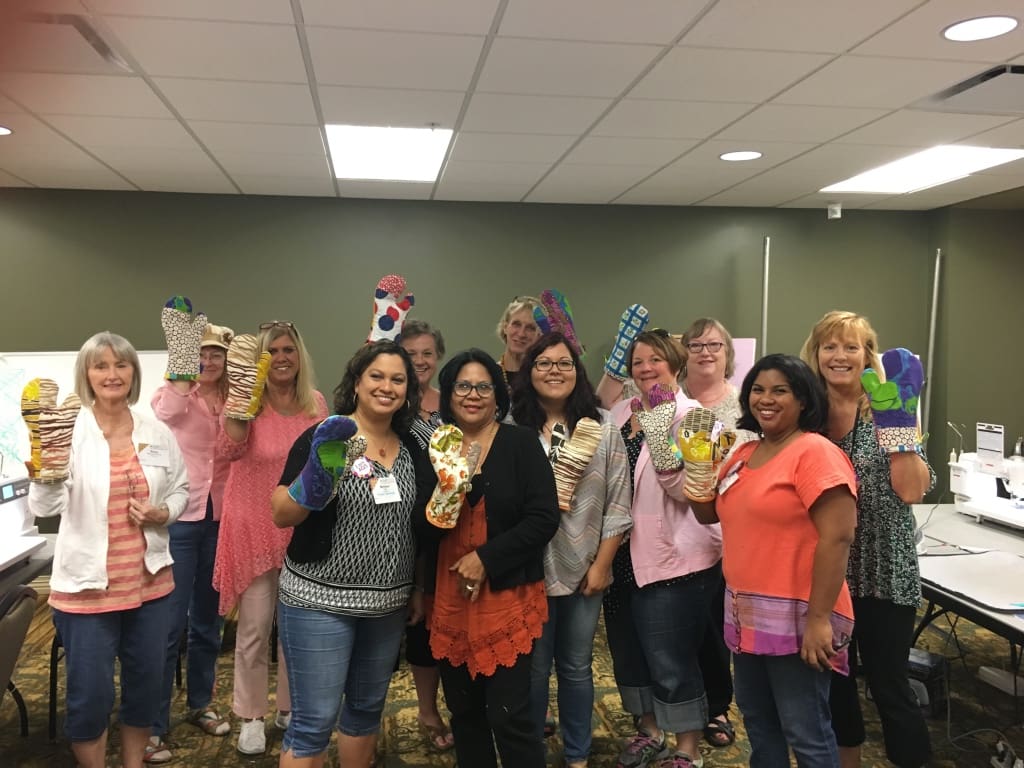 I teach how to make them at festivals. Artful Oven Mitts and Art Appliqué are my favorite and only Make & Take workshops.
